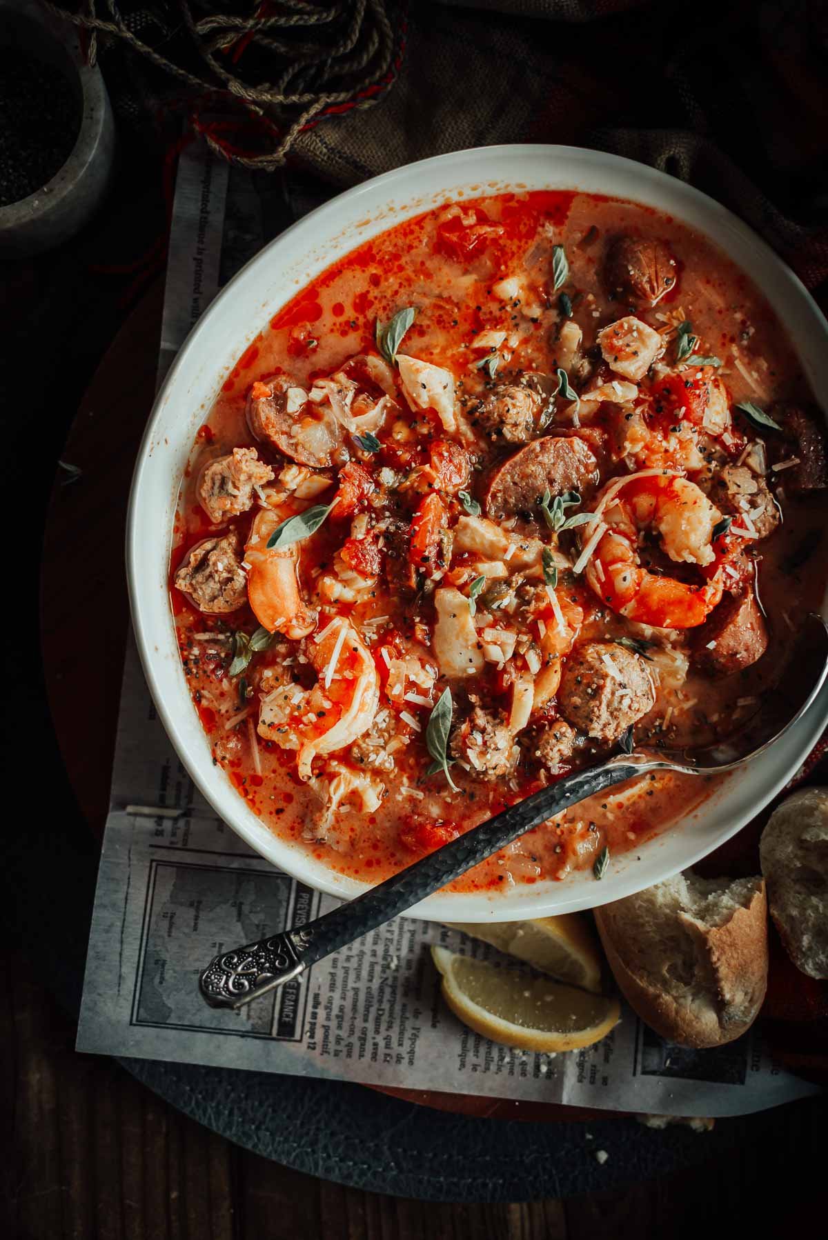 And while it may be easy to make, the secret lies in building layers of flavor, starting with the rendered sausages that create a rich foundation for the seafood and broth. Each spoonful delivers a perfect balance of land and sea – smoky sausage, flaky white fish, and plump shrimp in every bite.