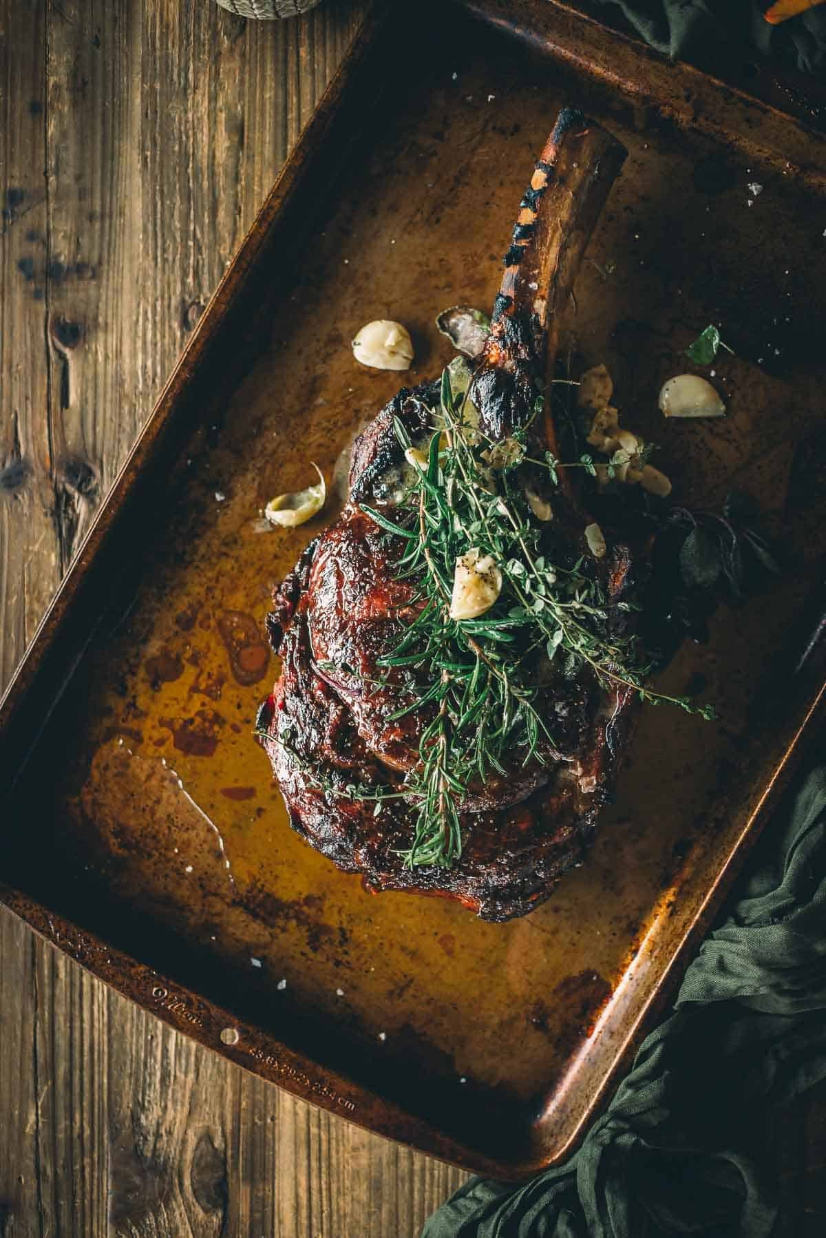 Ready for a game-changing tip? While your steak cooks, baste it with an herb brush. This isn’t just for show – it infuses the meat with subtle, aromatic flavors. See how to make an herb brush.