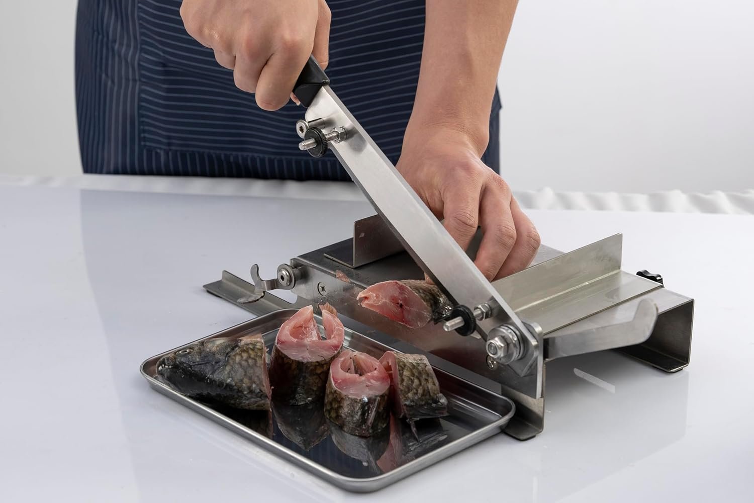 10inch Manual Meat Slicer – Heavy Duty Slicing Machine for Deli, Home, n BBQ – Frozen Meat Cleaver Knife Quick Prepare Ham, Bacon, Veggies, Herb, Root, Ginseng, Fish, Cheese, Ribs n Beef Jerky