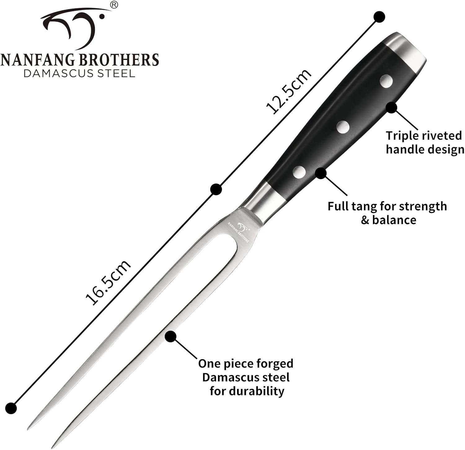 【UPGRADED 16-PIECE SET】 – This premium Damascus kitchen knife set includes 6 steak knives that glide through meat effortlessly, preserving the flavor and texture of your favorite cuts. Also included: a 6″ meat fork, perfect for securely holding roasts during carving and serving. An ideal addition to any cooking or entertaining setup