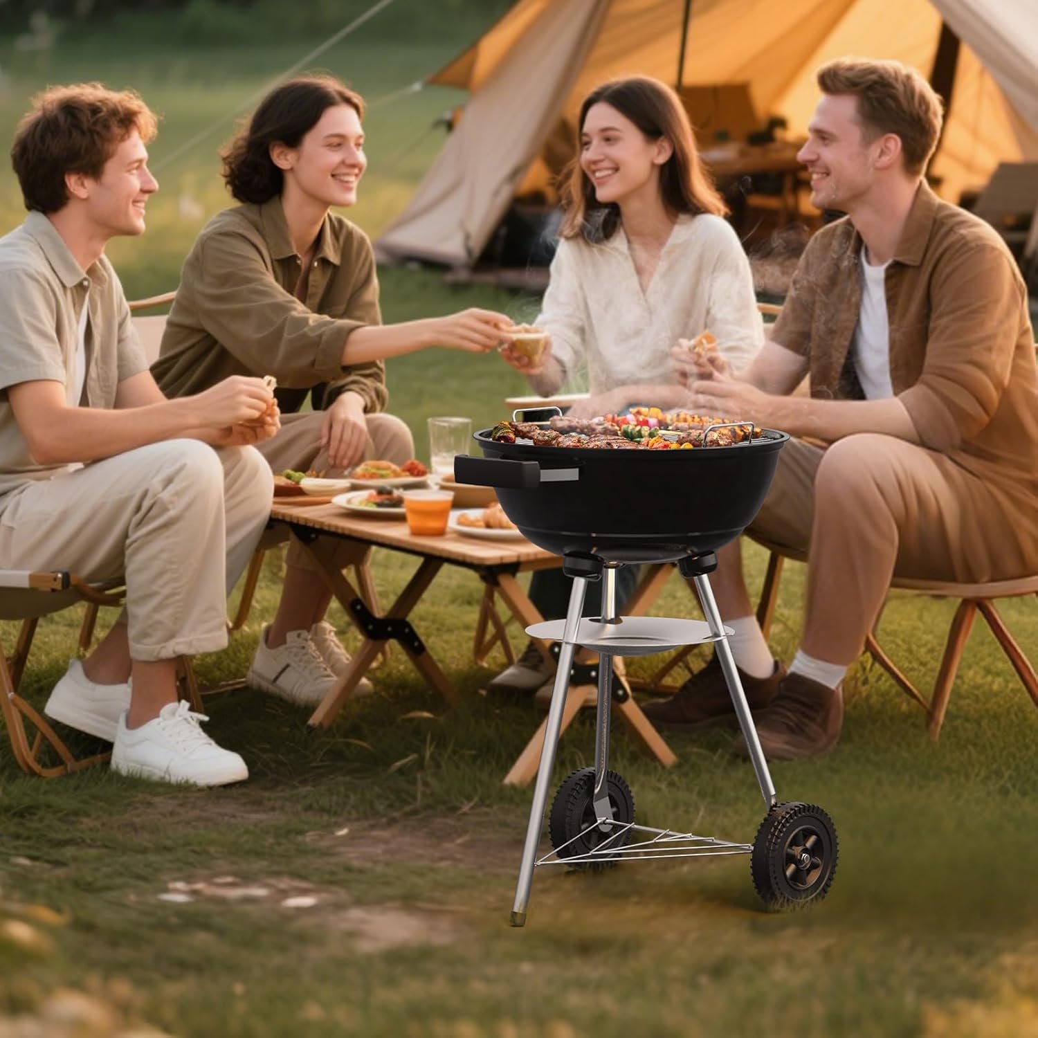 Optimal Setup, Easy to Move – Our portable grill has high-quality wheels and handles, making it a breeze to move around. Backyard, park, camping trip, beach—wherever you go, you can haul it effortlessly with no worries. It’s the perfect pick for all your grilling needs.