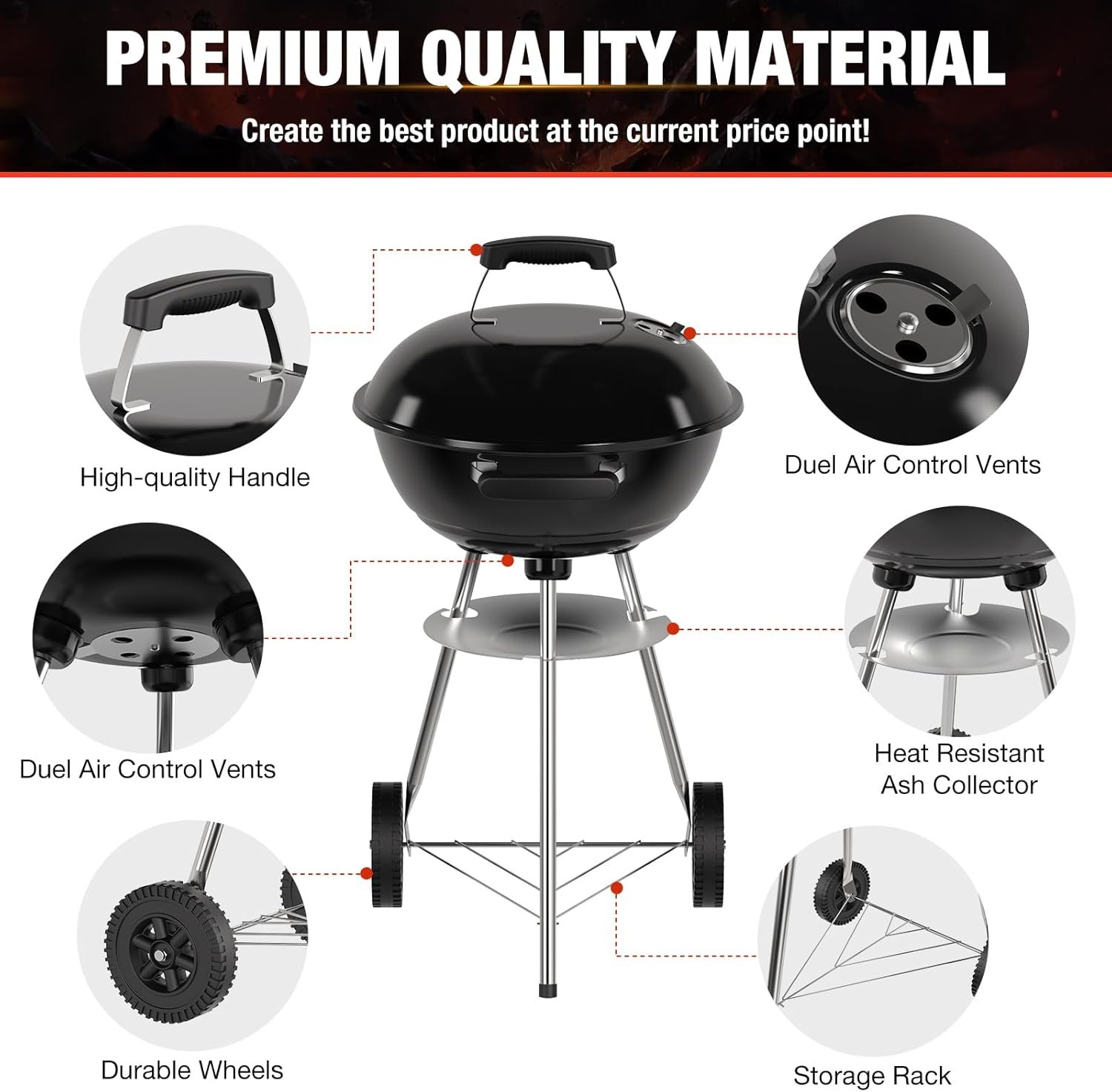 High-value portable grill – This 18 inch charcoal grill delivers the best features and performance for its price, ensuring you get an unbeatable grilling experience. It’s a total steal compared to those pricey brand-name grills—easily the top pick for a budget-friendly option.