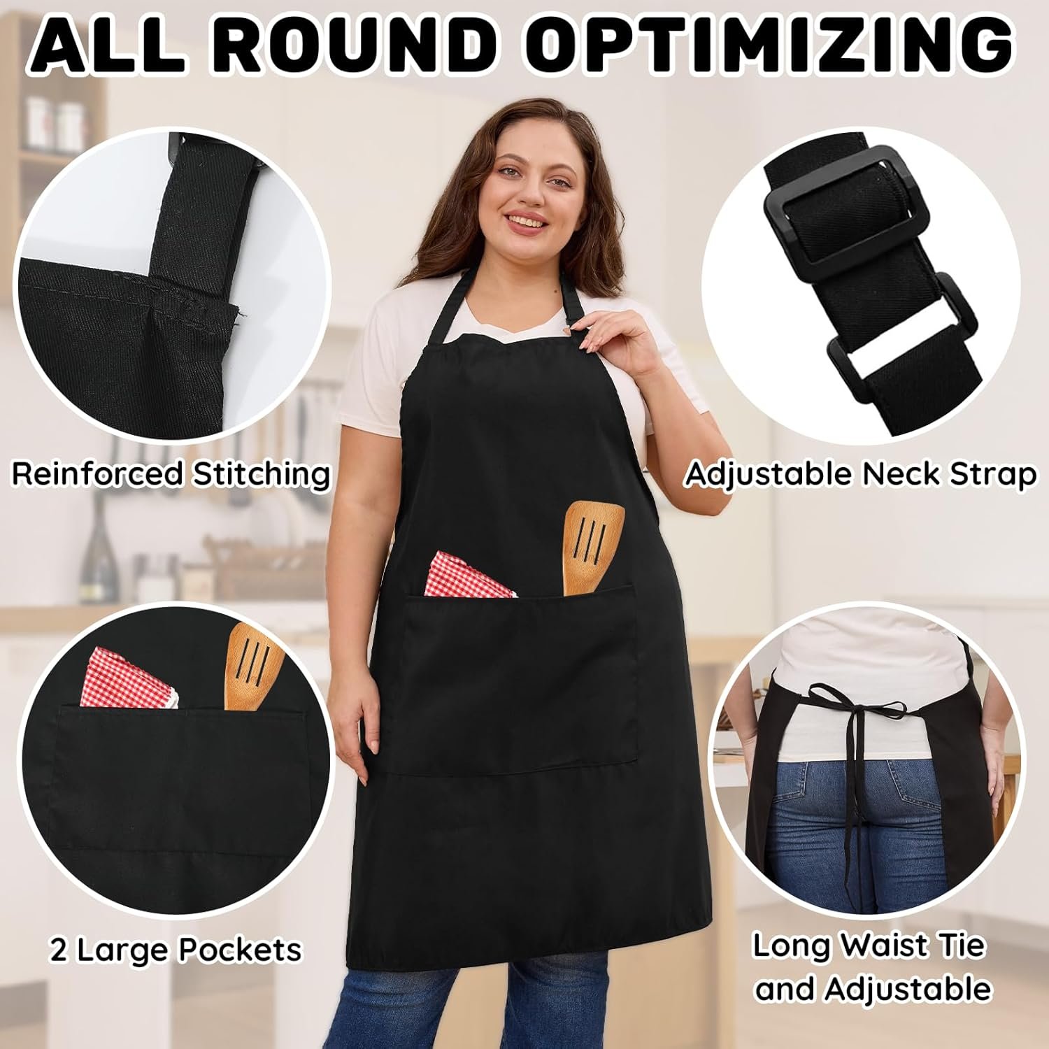 2 Pcs Plus Size Chef Apron, Unisex Professional Apron with 2 Pockets for Cooking, Work, Baking (Larger Size)