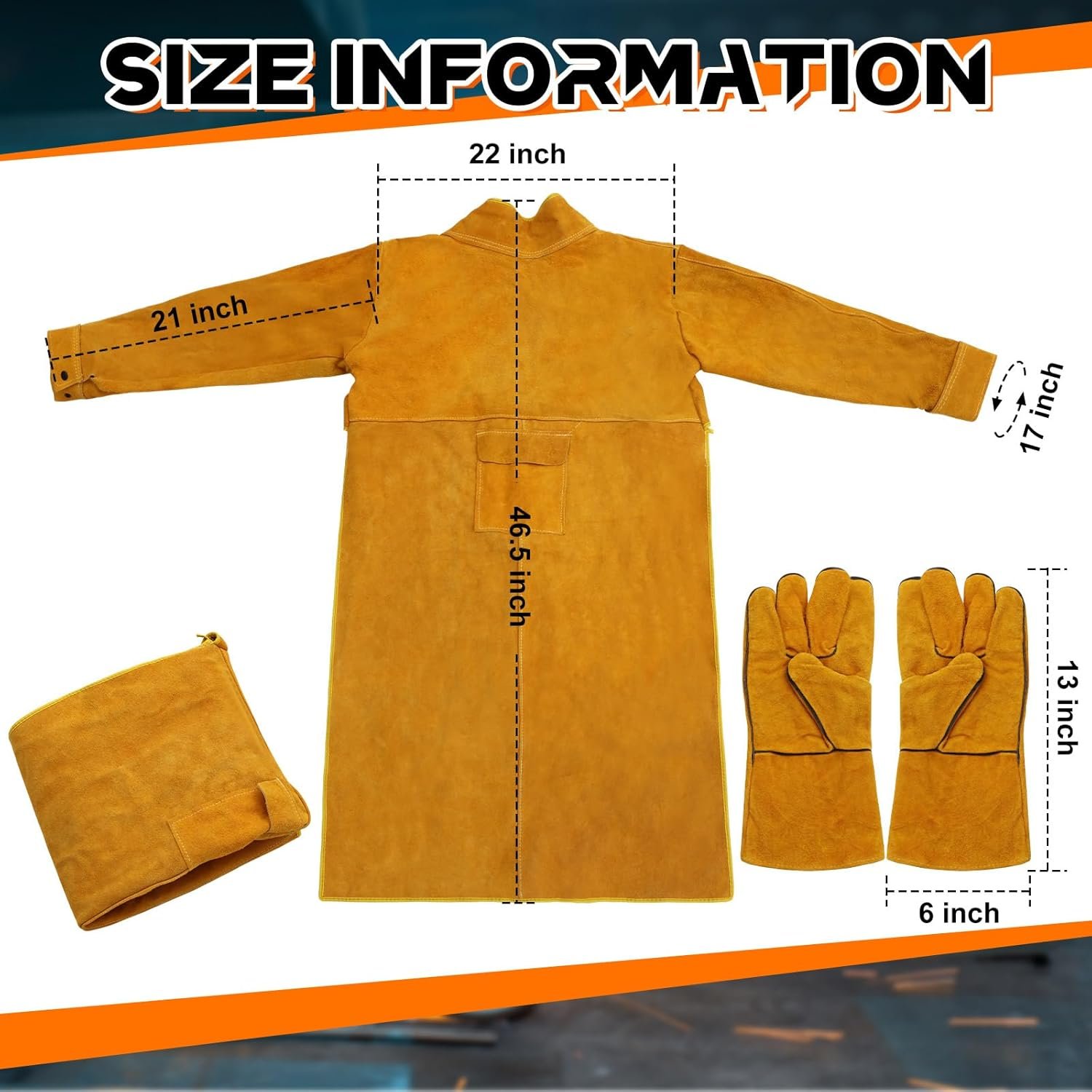 3 Pcs 47 Leather Welding Apron with Sleeve Welding Gloves Heavy Duty Durable Forge Welding Welding Boot Covers Heat Resistant Flame Retardant Welding Jacket for Men Women Blacksmith