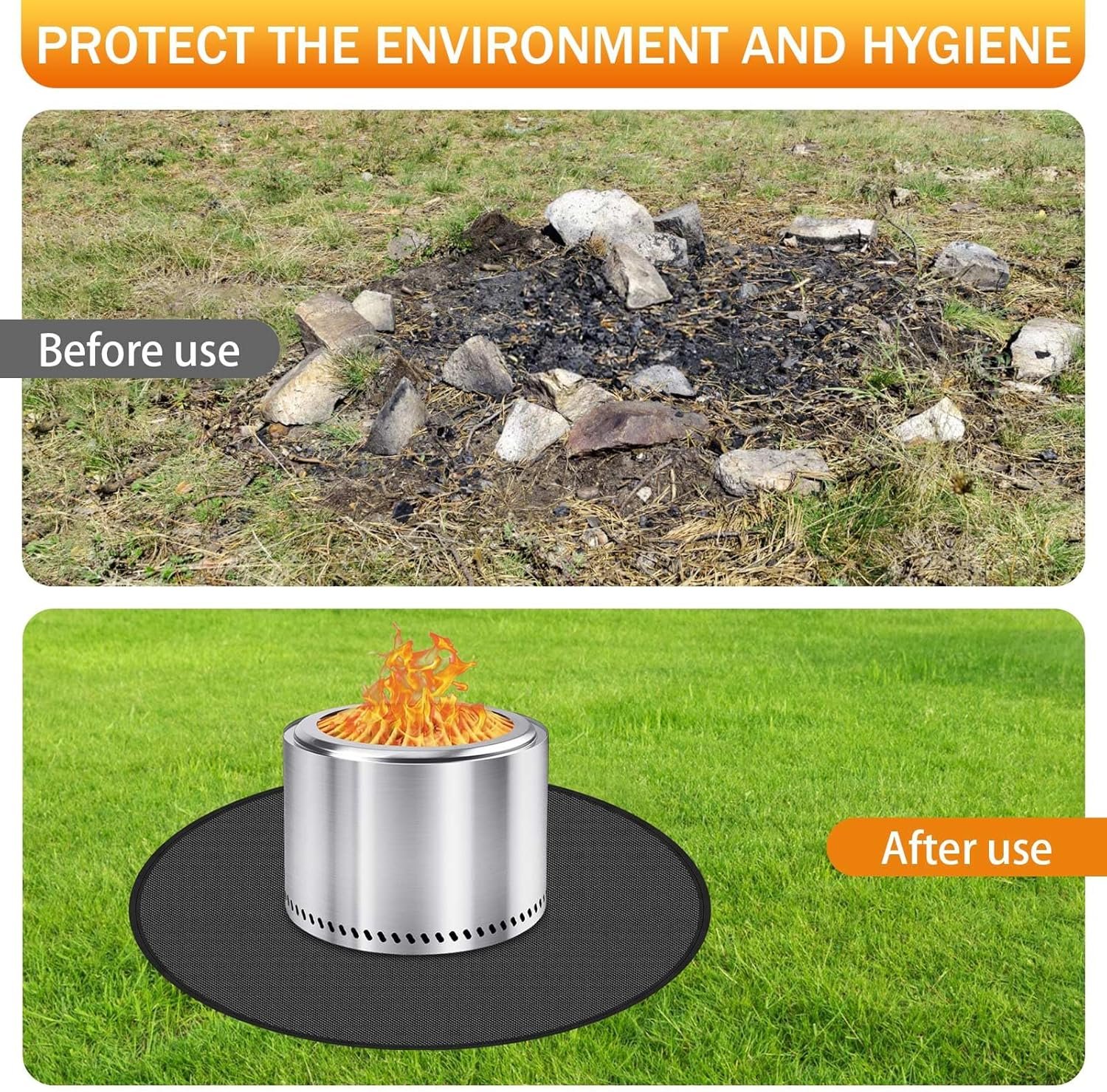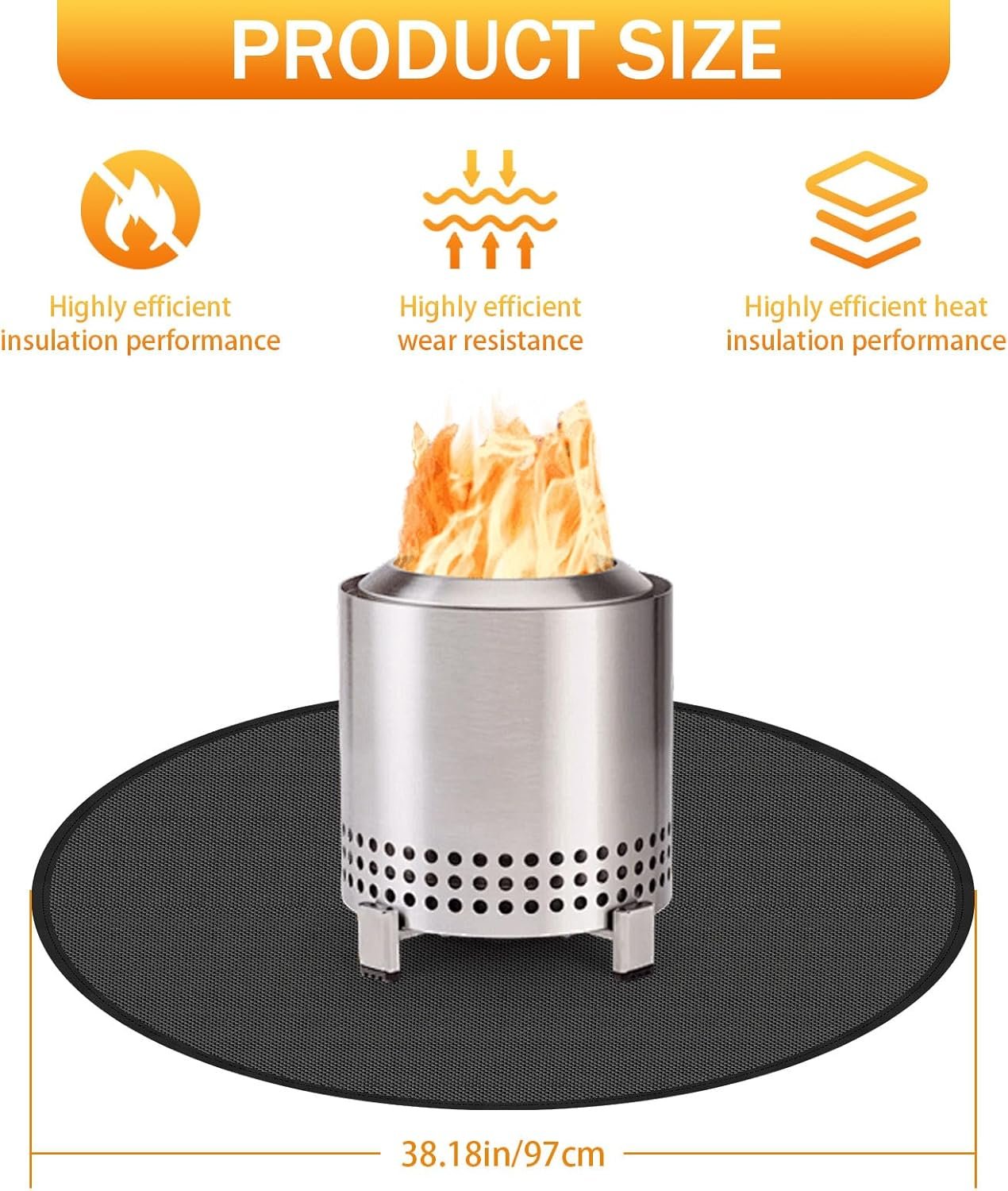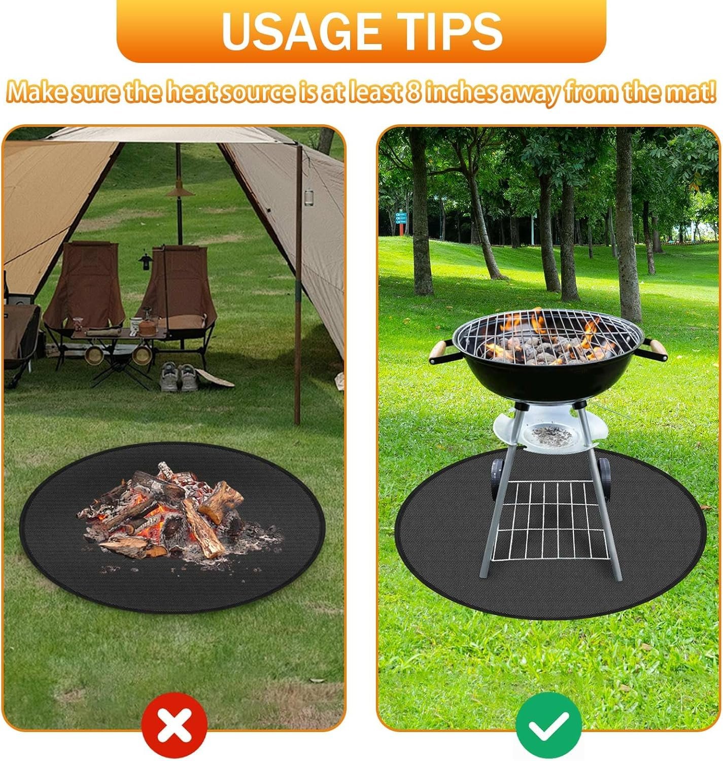 Kindly Reminder: When using this grill mat for deck, please keep at least 5” between the bottom of the fire and the mat, and please do not make a fire on this mat directly
