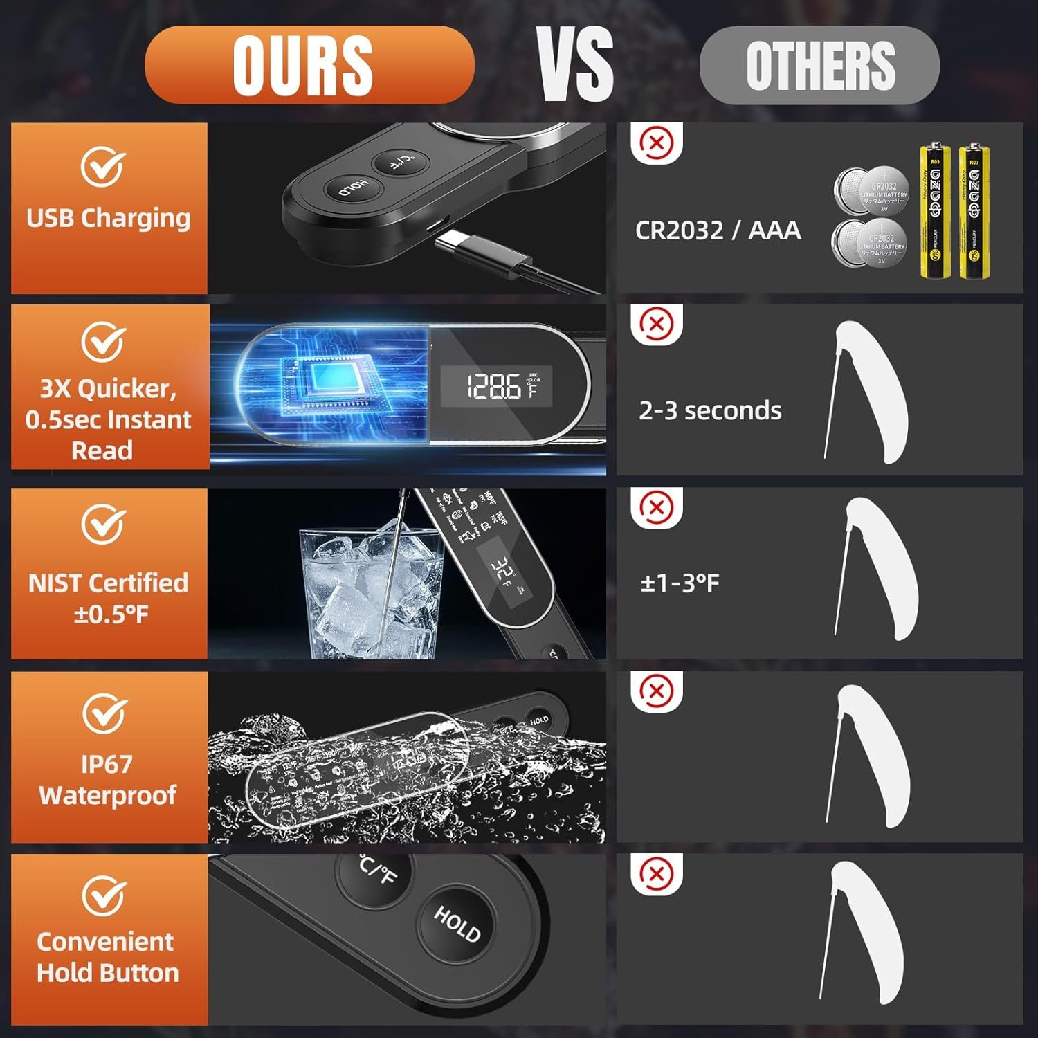 Be the first to review “3X Faster 0.5s Instant Read Meat Thermometer, 2025 Rechargeable ±0.5℉ NIST Certified Wireless Food Thermometer, Waterproof, Auto Wake/Sleep, Rotation Display & Temp Lock for BBQ, Candy, Grill”