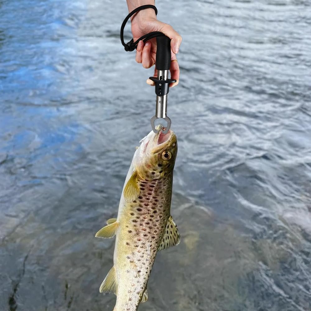 STAINLESS STEEL FISH LIP GRIPPER: The stainless steel tube and components won’t break down in saltwater and will survive years of hard use. The rubberized grip gives you a firm grasp, ergonomic handle prevents slipping during use, safety guard protects your fingers. The adjustable wrist strap at the bottom is up to 12 inches long which is great for protecting the fish gripper from being lost.
