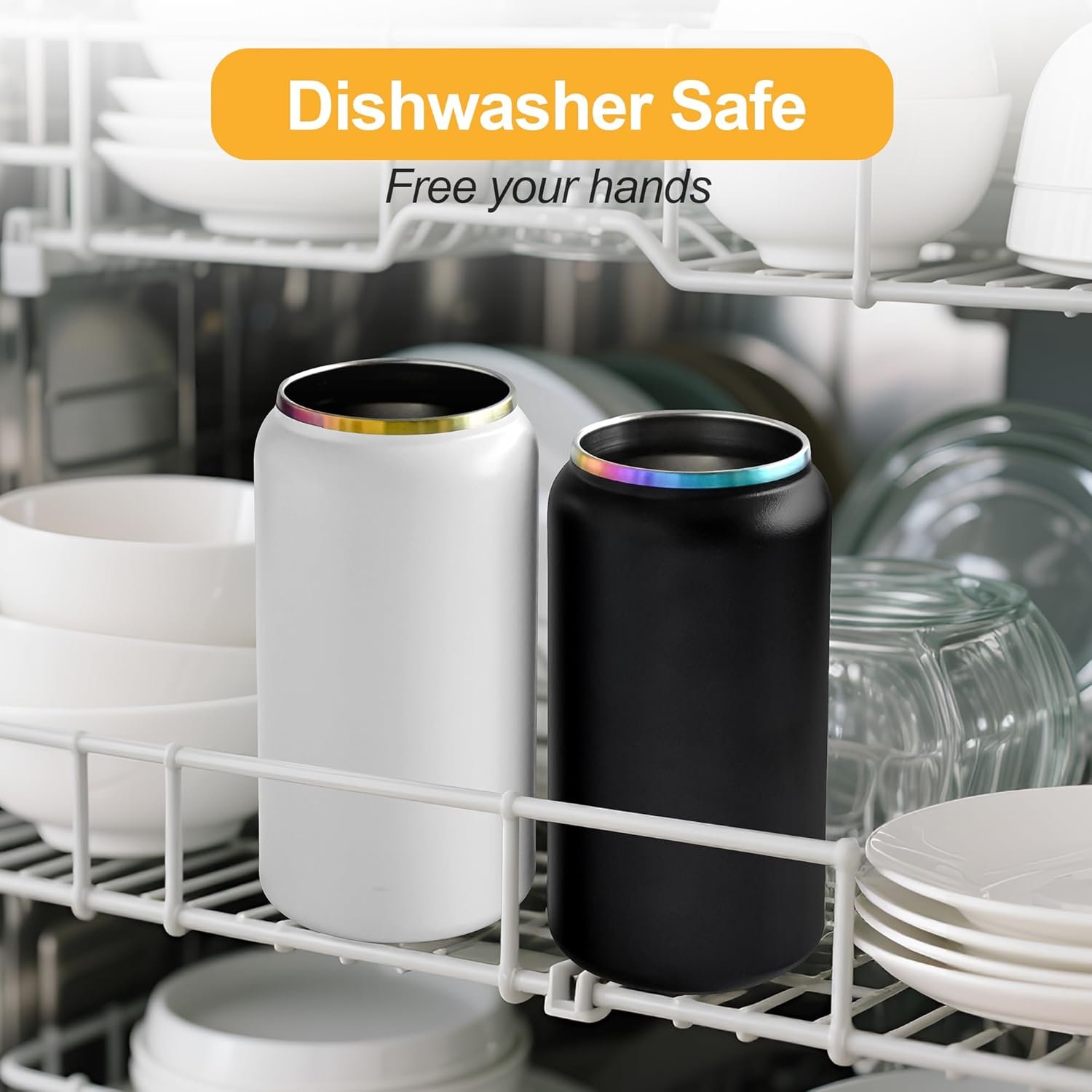 DOUBLE-WALL INSULATED CUPS: These stainless steel can tumblers use double-wall vacuum technology. It’s super effective, keeping your coffee hot for 12 hours and beer cold for 24 hours. Whether it’s winter, summer, or any time, you can enjoy your drinks without annoying sweat or drips.