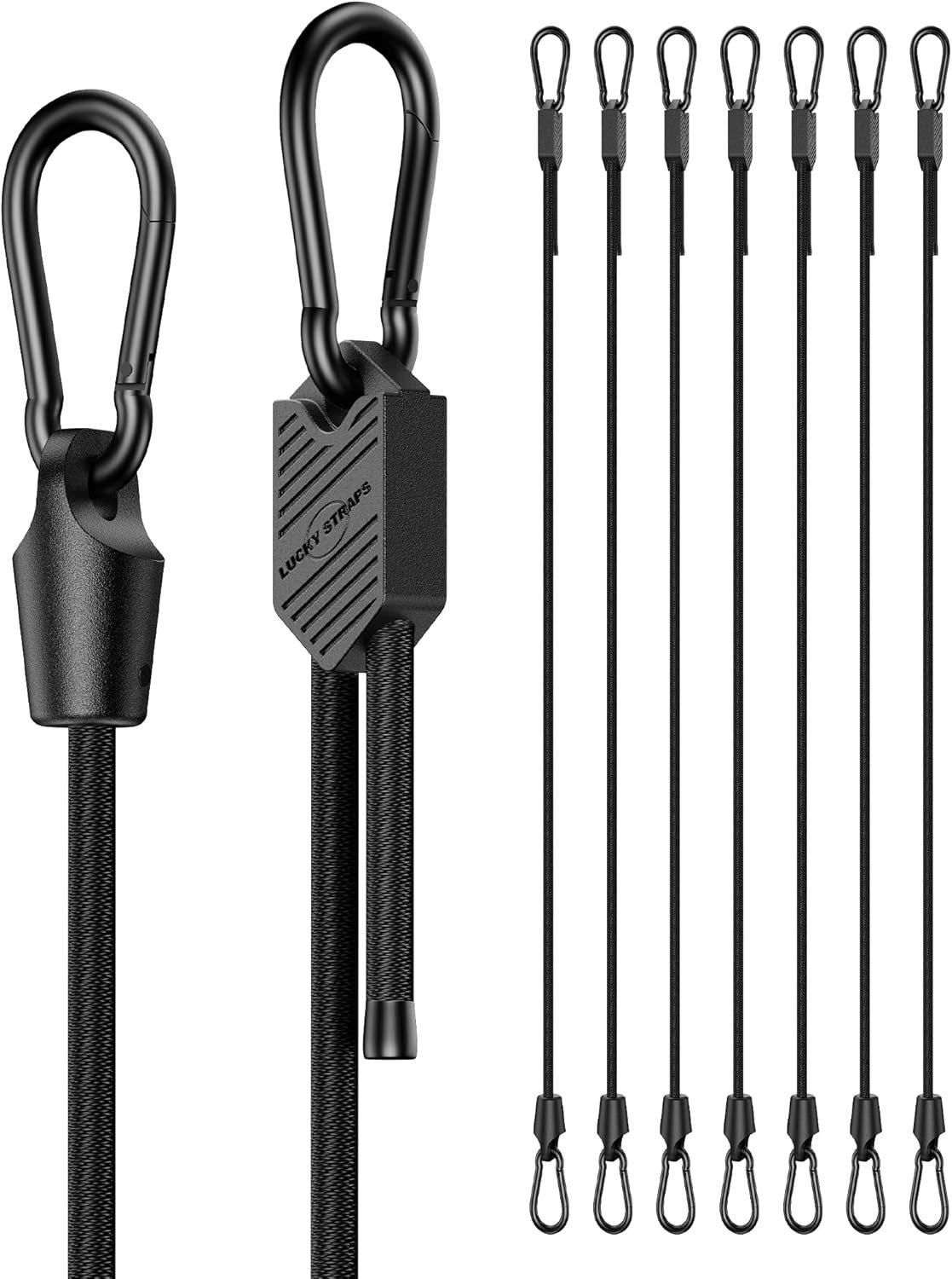 SUPERIOR ELASTICITY – Stretch up to 1.7x to 2x original size. Made of best-quality Thai latex, LuckyStraps adjustable carabiner bungee cords have greater elasticity, wider loading range, and longer lifespan.