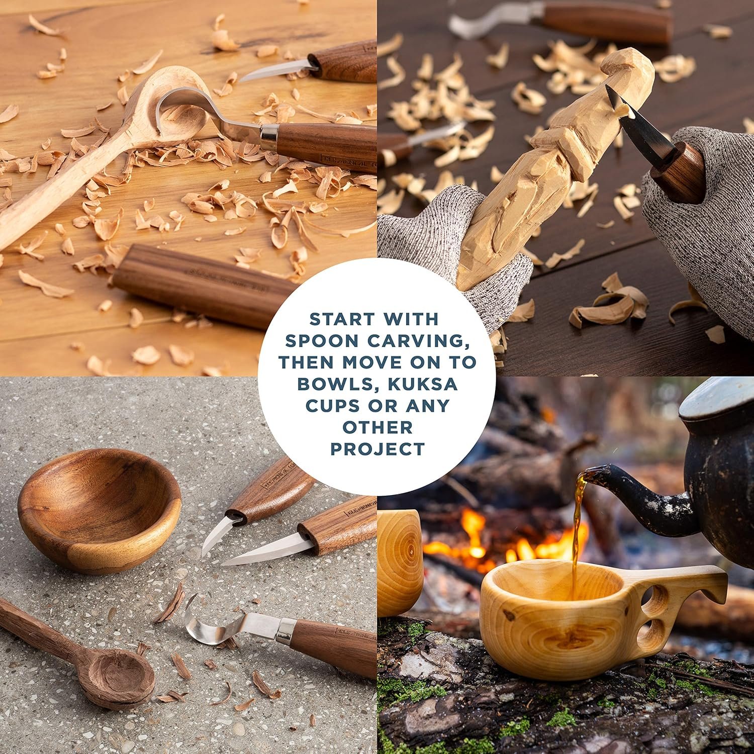❗GREAT FOR ANY CARVING OR WHITTLING PROJECT❗Start your craft with spoons and graduate to carving bowls or kuska, whittling wooden gnomes or wizzards, kuksa cup the possibilities are endless with our carving tools