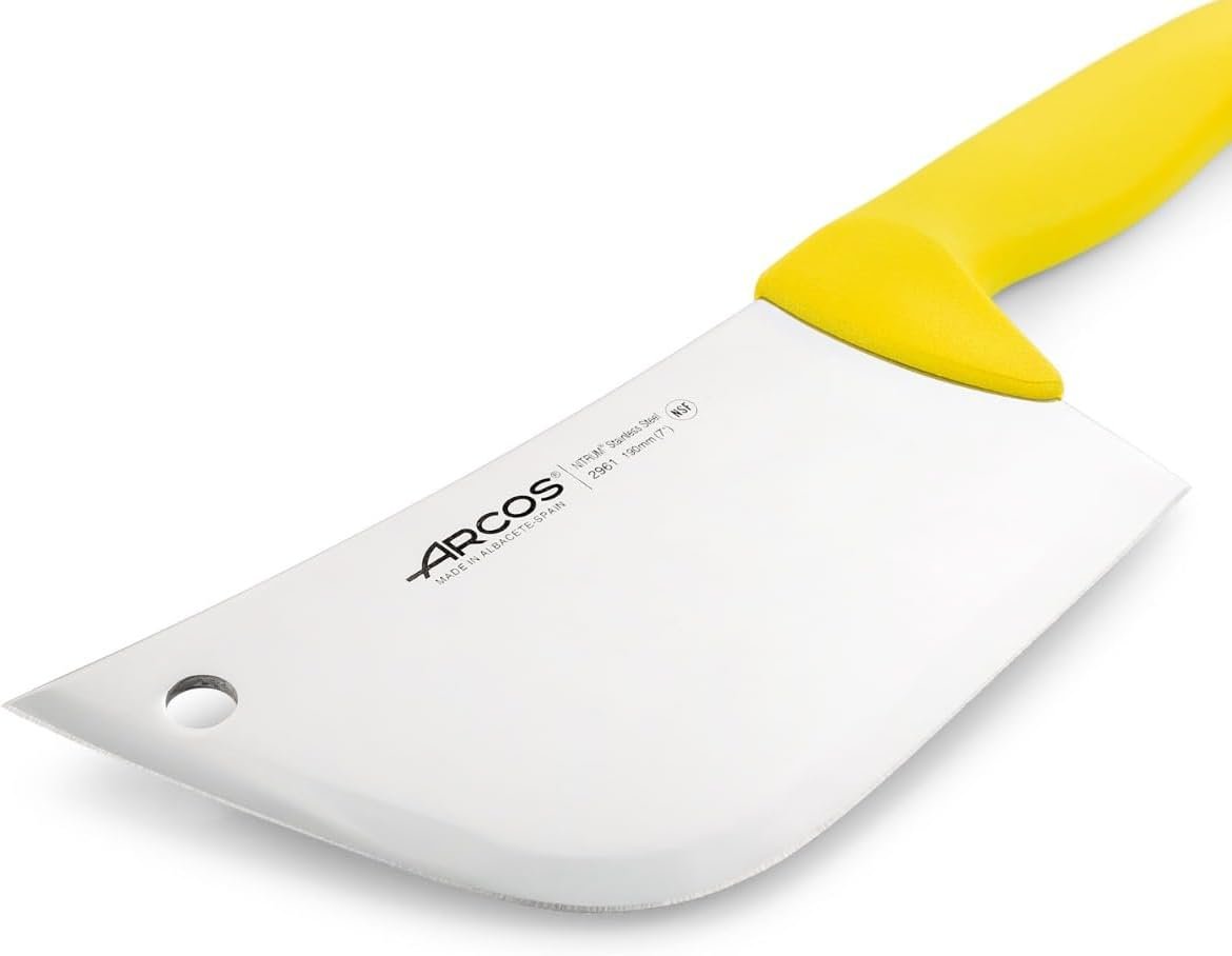 Arcos Cleaver Knife 7 Inch Nitrum Stainless Steel and 190 mm blade. Professional Butcher knife. Ergonomic Polypropylene Handle. Series 2900. Color Yellow