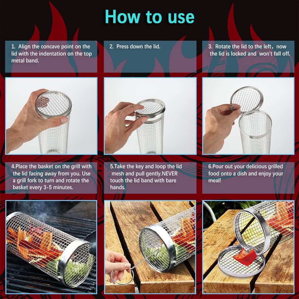 🔥【Best Service】 — We will meticulously inspect Rolling Grilling Basket. If there is any damage, please contact us first and we will provide you with a free replacement service. If you have any questions about our Rolling Grilling Basket, please contact us, we will give you feedback within 24 hours.