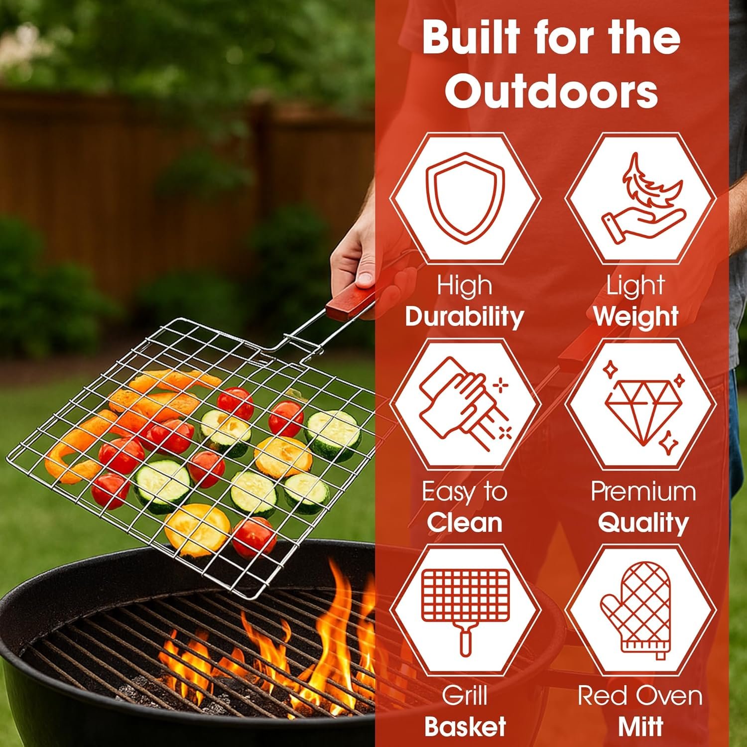 Cook with Comfort – Stylish Red Apron & Protective Glove Included Stay clean and safe while you grill! The red apron adds a fun and bold look while protecting your clothes from splatters and grease. Paired with the heat-resistant glove, you’ll enjoy safer handling of hot grill utensils and food. Whether you’re flipping burgers or managing a meat grill session, these accessories make your experience comfortable and mess-free. A thoughtful addition that separate