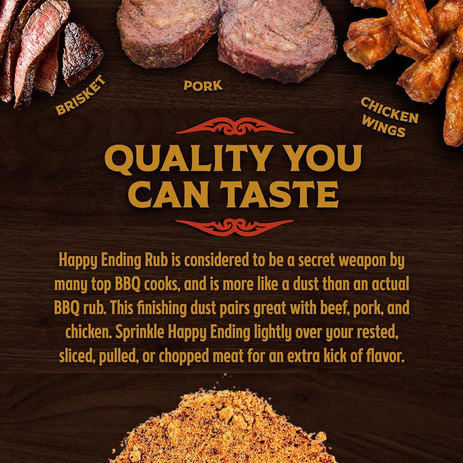 Game-Changing Flavor: Elevate your barbecue to greatness with the game-changing flavor of Happy Ending. A sprinkle of this beef seasoning is the final touch that transforms good BBQ into an extraordinary culinary masterpiece. Simply sprinkle a bit of our Big Poppa Seasoning on the top of your dish before serving to effortlessly infuse it with a subtle yet impactful burst of flavor.