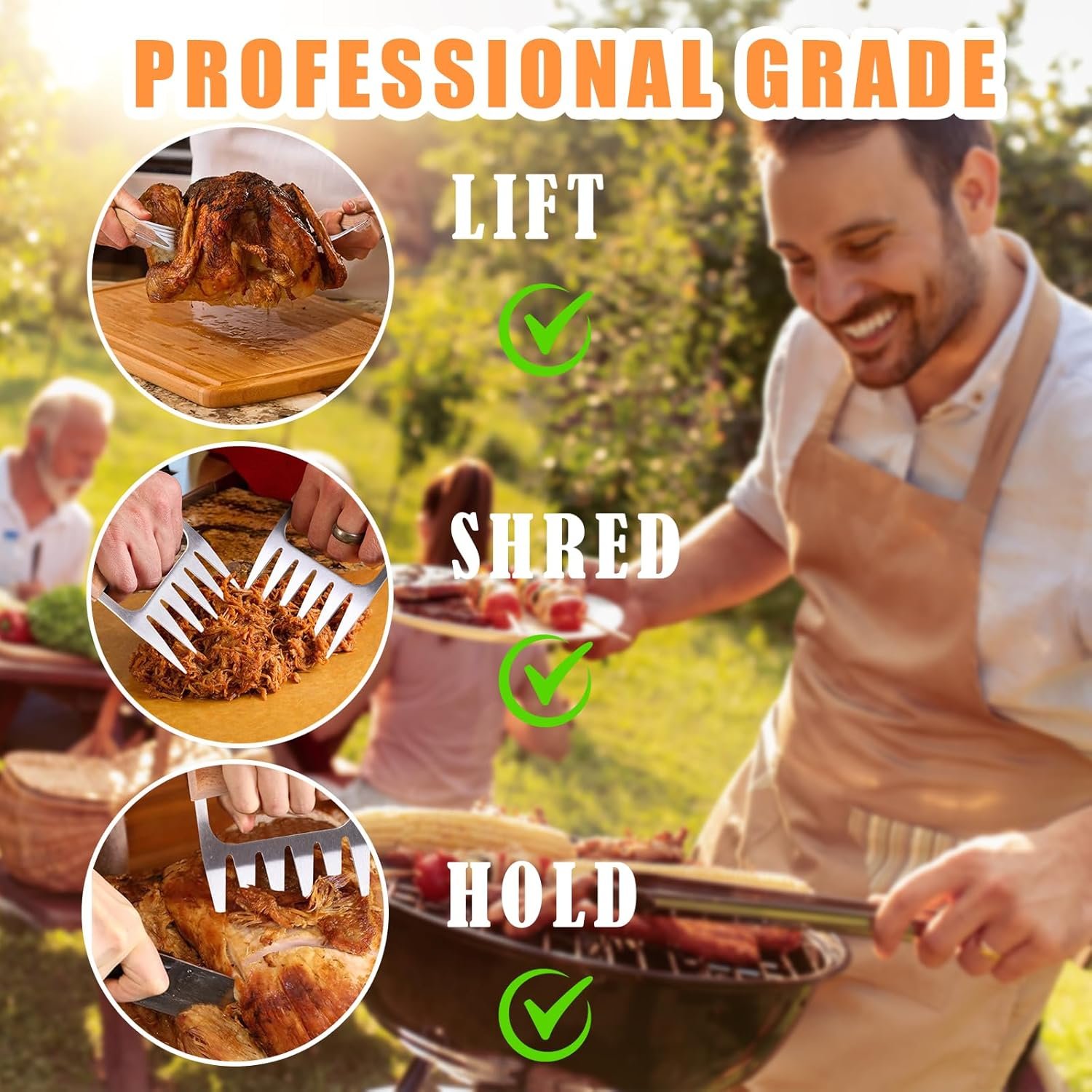 【Premium Stainless Steel BBQ Claws】Unlike others’ plastic or nylon alternatives that can melt or bend, our metal meat claws for pulled pork are forged from heavy-duty 18/8 304 stainless steel, ensuring they never melt or bend and can withstand heat up to 1100 degrees.