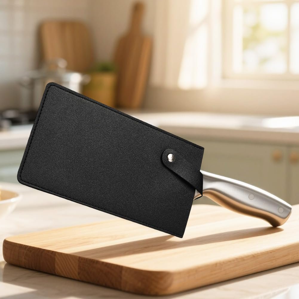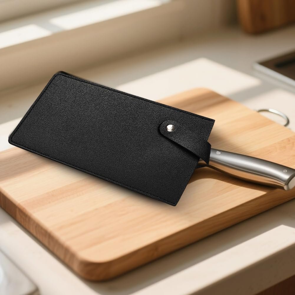 Black PU Leather Wide Meat Cleaver Protector Waterproof Butcher Scissors Sheath Universal Durable Leather Chef Scissors Edge Guard Cover Sleeve Case Holder with Snap for Kitchen Outdoor BBQ
