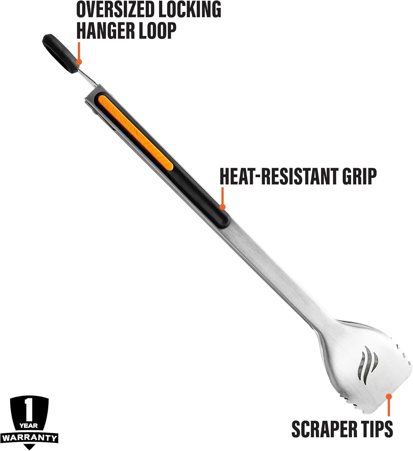 Blackstone 5228 Griddle Grill Tongs Stainless Steel Heat Resistant Rubber Grip to hold your Meat and Veggies- Premium Long BBQ Grill Scraper Tongs, Dishwasher Safe 14″ Black/Orange