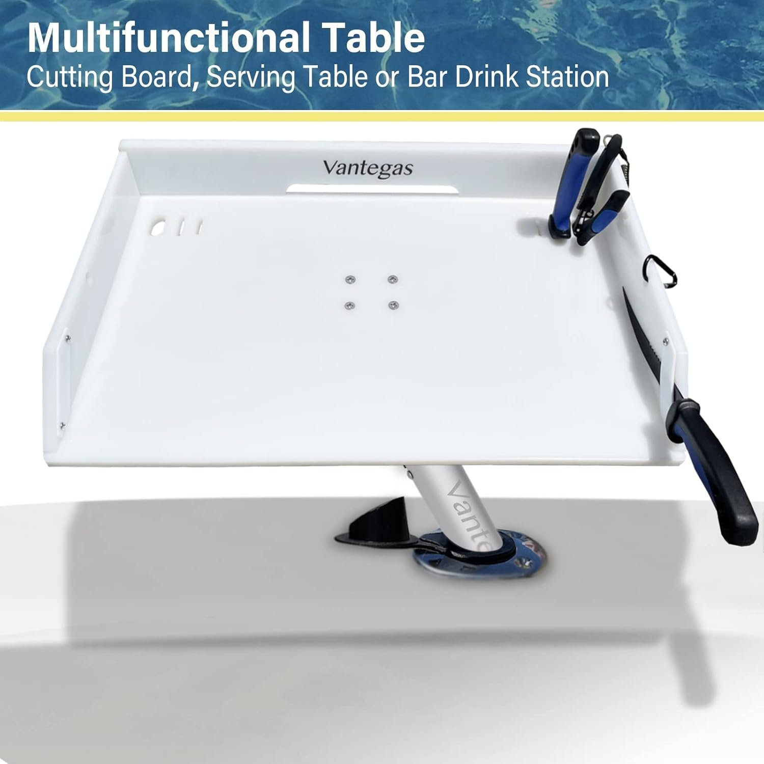 Our Boat Cutting Board is the perfect boat accessory you need when you go fishing, it can be used as a fish cleaning table/board or bait cutting board, as well as a serving table, a bar drink station.