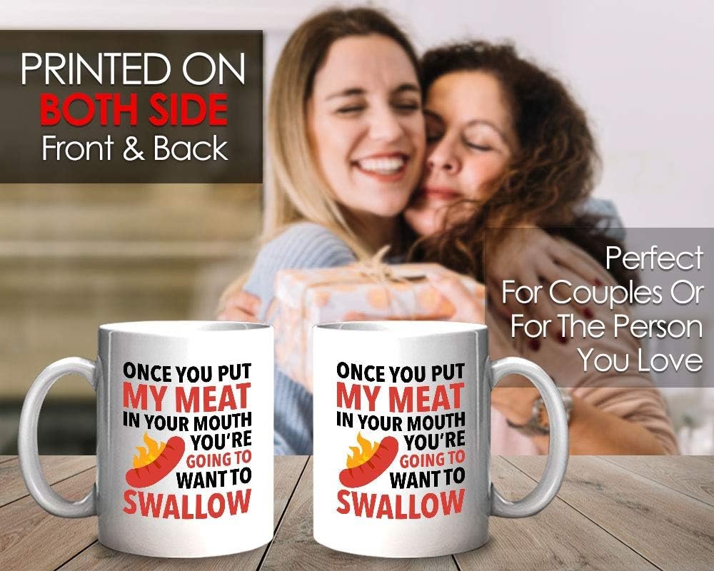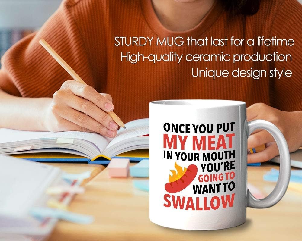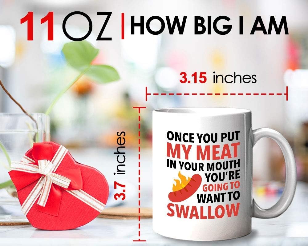 Bubble Hugs Funny BBQ Coffee Mug – Once You Put My Meat – Steak Grill Lover Kitchen Humor Joke Sarcasm 11oz White