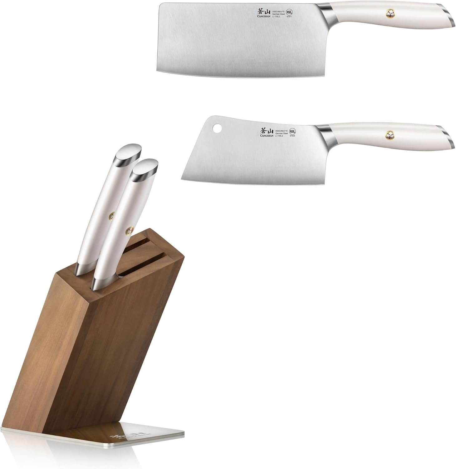 3-Piece Set Includes 7″ Vegetable Cleaver, 6″ Meat Cleaver, Acacia Knife Block