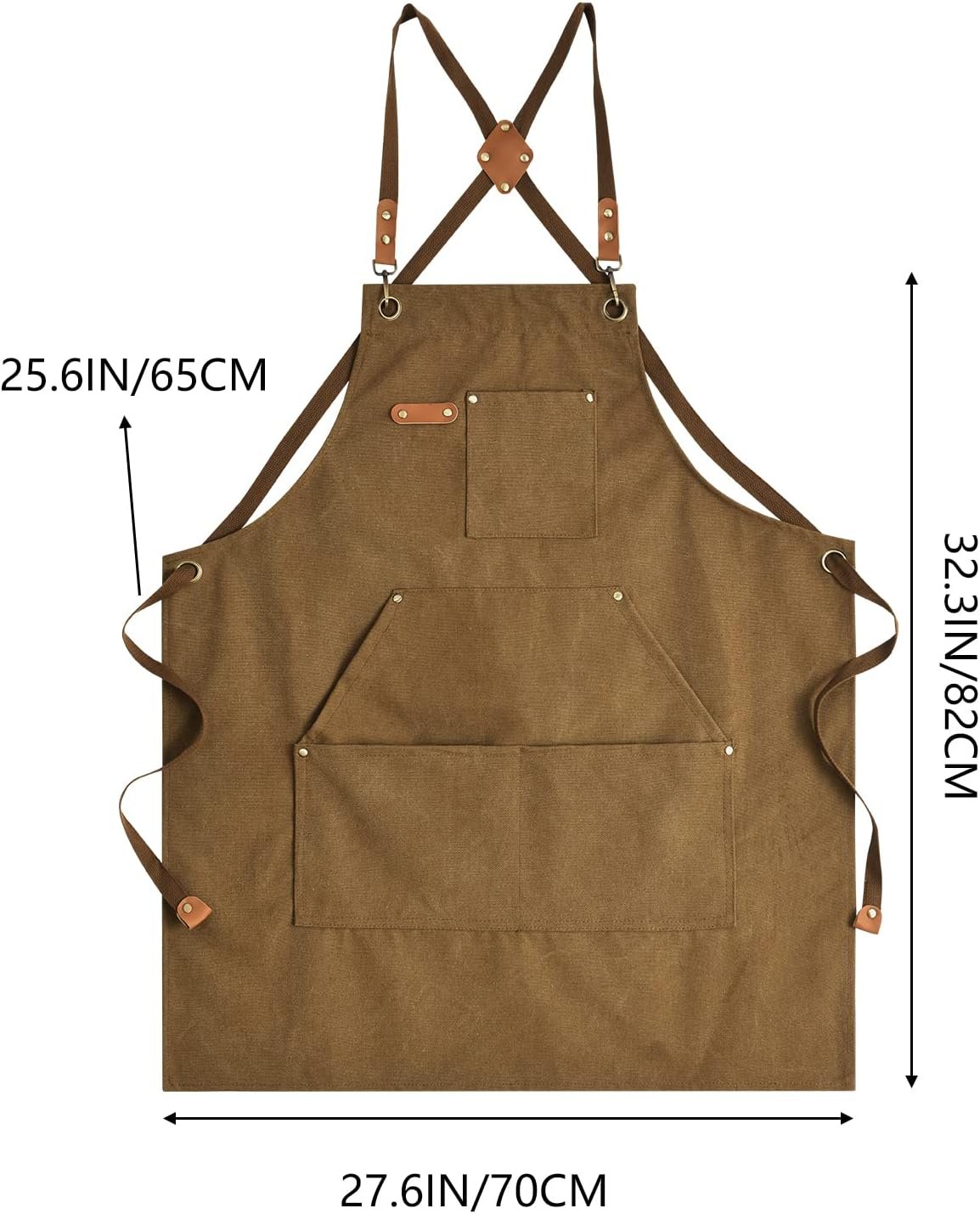 Canvas Aprons for Men Chef Apron, Work Apron with Large Pockets – 16oz Heavy Duty Cross Back, BBQ, Cooking