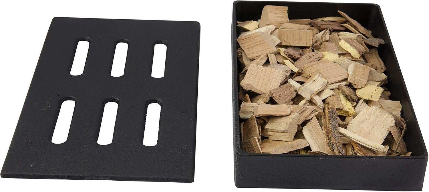 SIZE: At 8 inches long, the Smoker box fits enough wood chips to give your meat real smoke flavor.