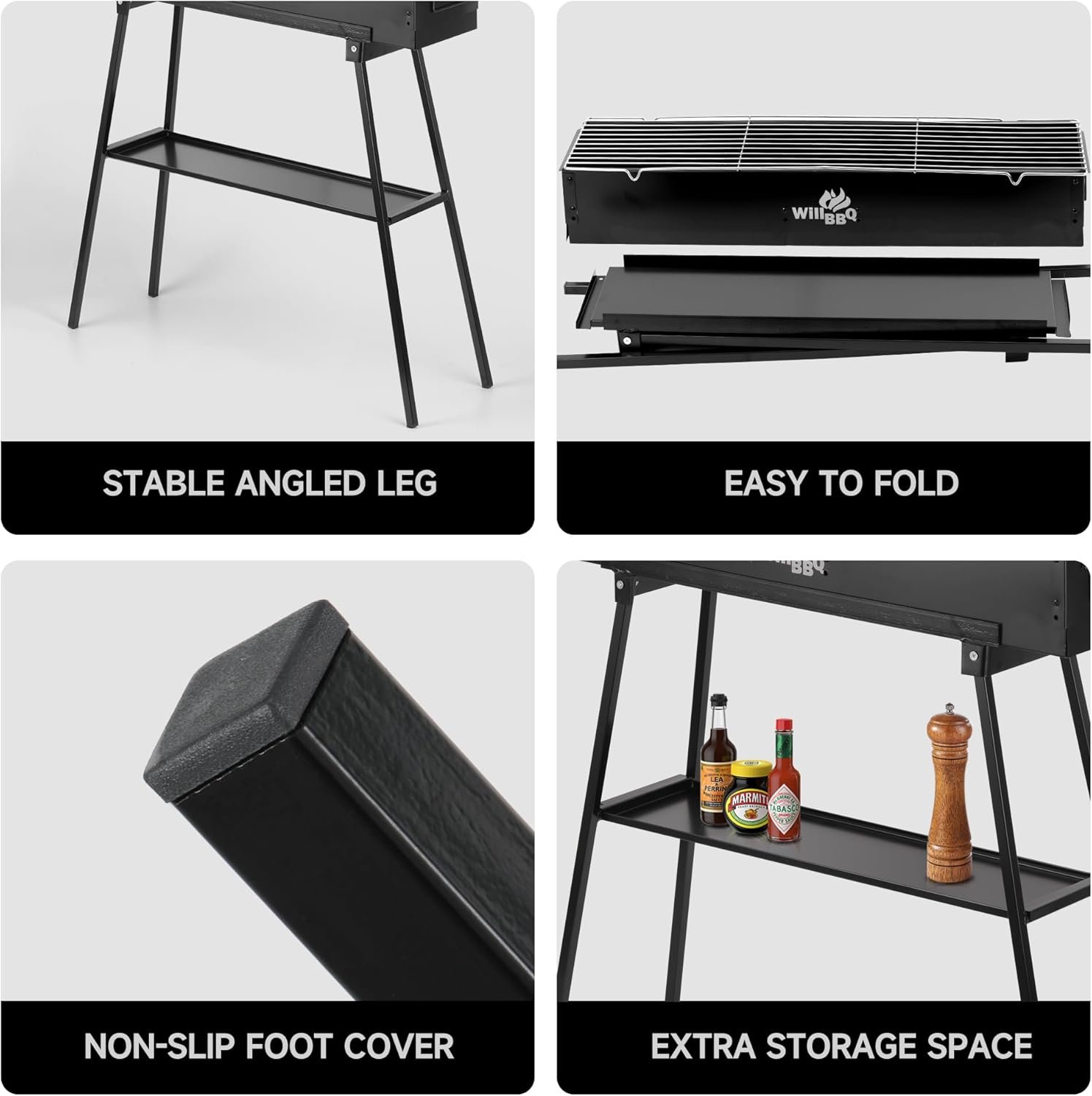 【Excellent Ventilation Design】​Air vents on both ends of the charcoal grill allow for proper temperature adjustment and control.thus, heat can be evenly distributed throughout the charcoal grills, and the charcoal inside is fully burned,enables you to cook meat confidently.