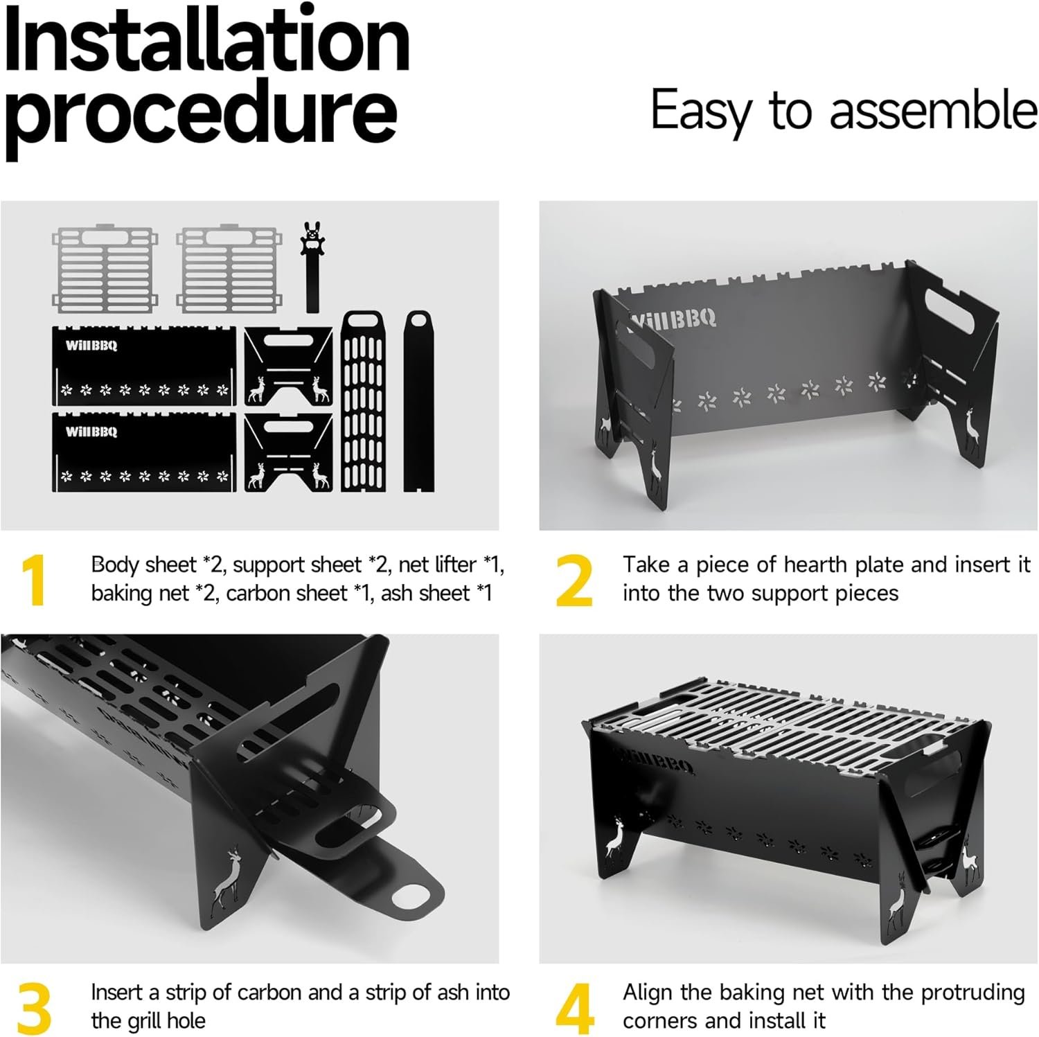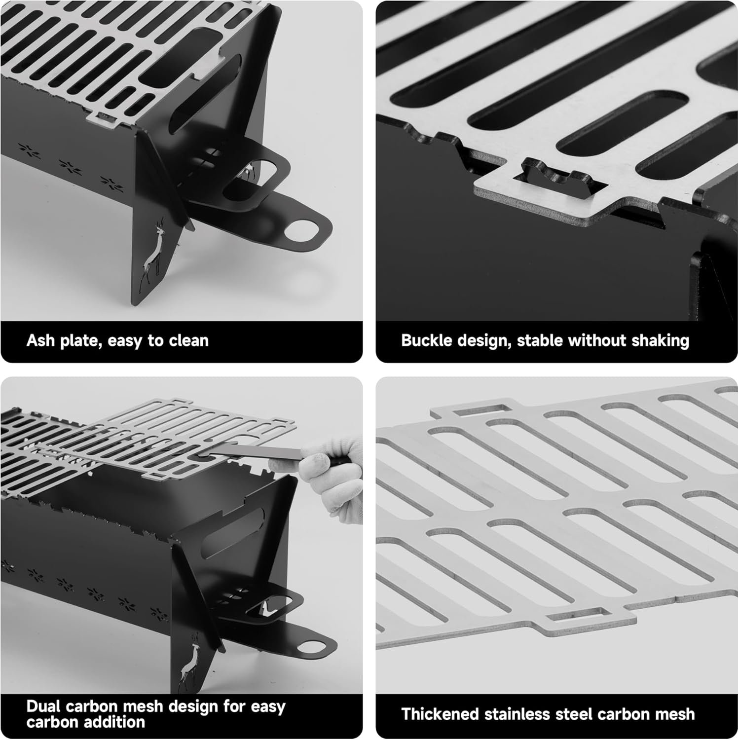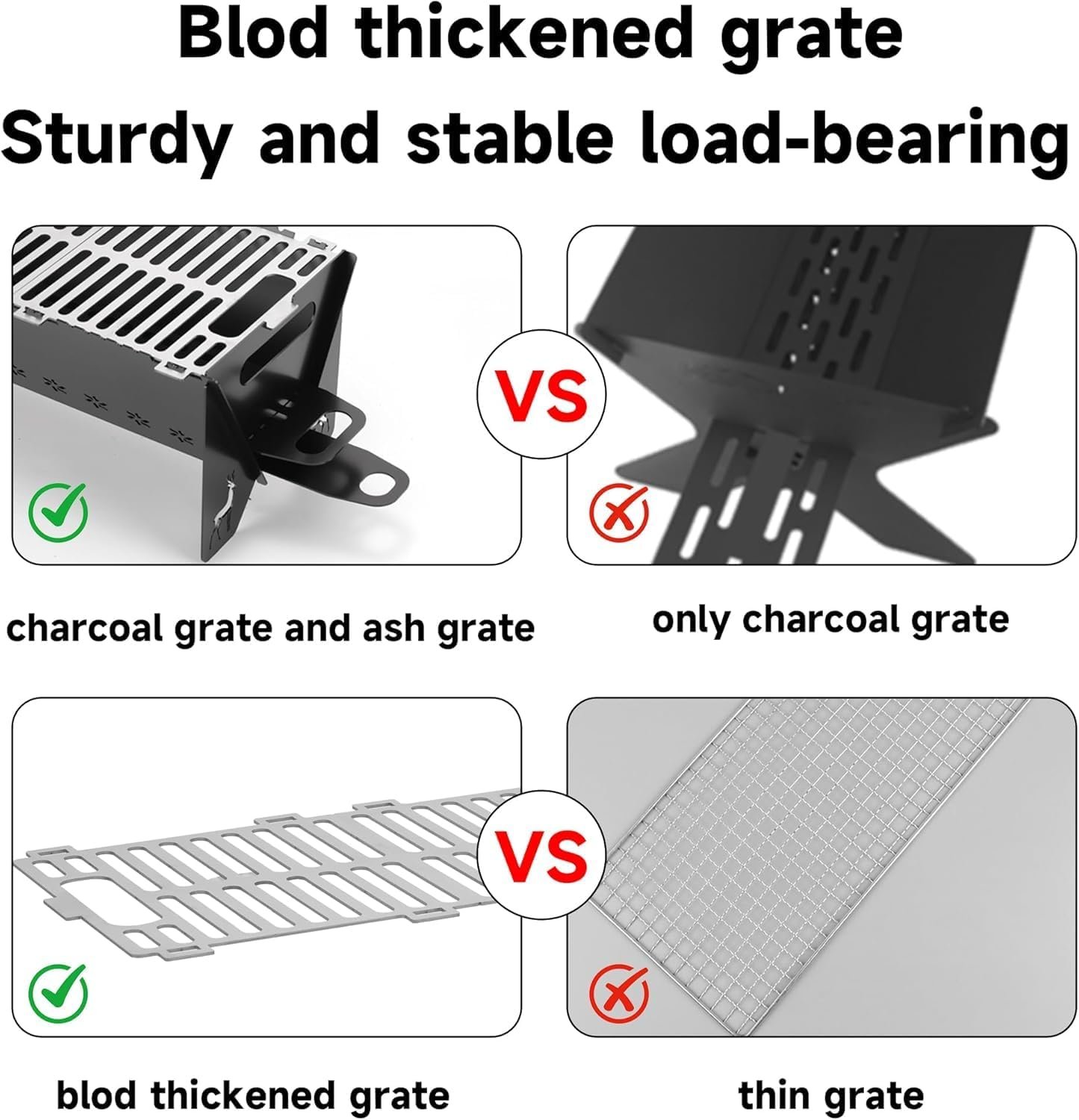 【Detachable Design & Easy Portability】The portable charcoal grill can be quickly disassembled and assembled. After disassembly, the folding thickness is only 0.8 inches. It comes with a carrying bag, which is easy to carry. It is easy to carry outdoors for bonfires, picnics, and barbecues in the courtyard or garden. It is also easy to clean after disassembly.