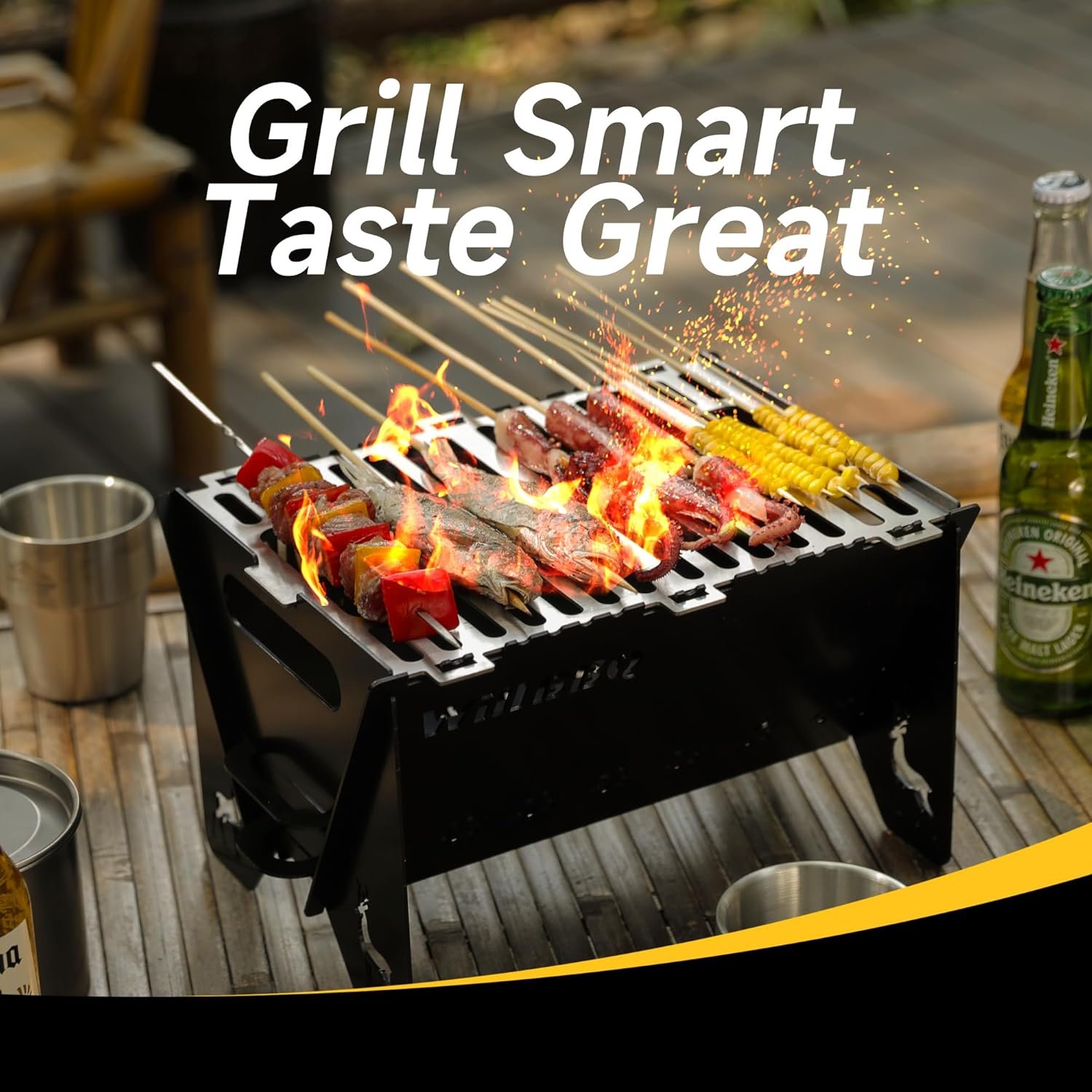 【Larger Grill and Ventilation Design】Upgraded to enlarge the 15.8*8.5 inch barbecue area, you can grill more food at the same time, satisfy more people, and reduce waiting time. The grilling grid adopts a double-piece design, making it easy to add carbon. The oven is equipped with vents all around to allow air circulation to allow the charcoal to burn fully and reduce fuel consumption.