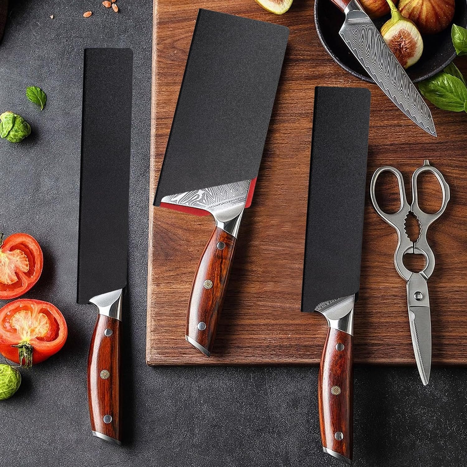 Extra Grip: Crafted with anti-slip design, these blade covers provide enhanced grip, reducing the risk of slipping and accidental damage when sliding knives in and out of the sheath