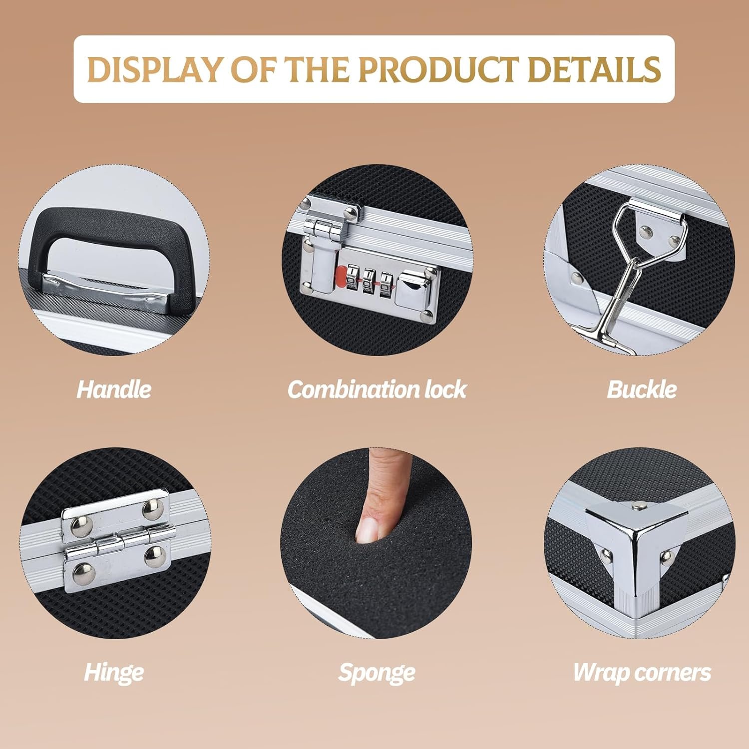 Durable Material:the box surface is very hard with aluminium alloy edging, while the box is lined with soft EVA materials. Durable ABS handle. Nylon belt. This case is very durable