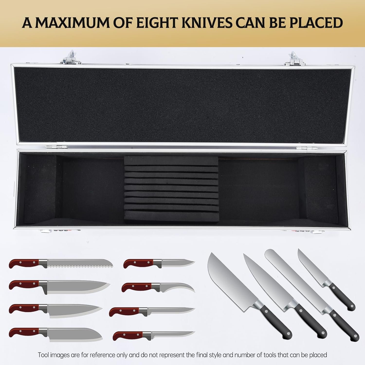 Chef’s Knife Case Aluminum Hard Case with Dual Combination Locks Cultery Carrier Portable Knife Organizer Block Holders Protectors With 8 Slots Can Hold Home Black