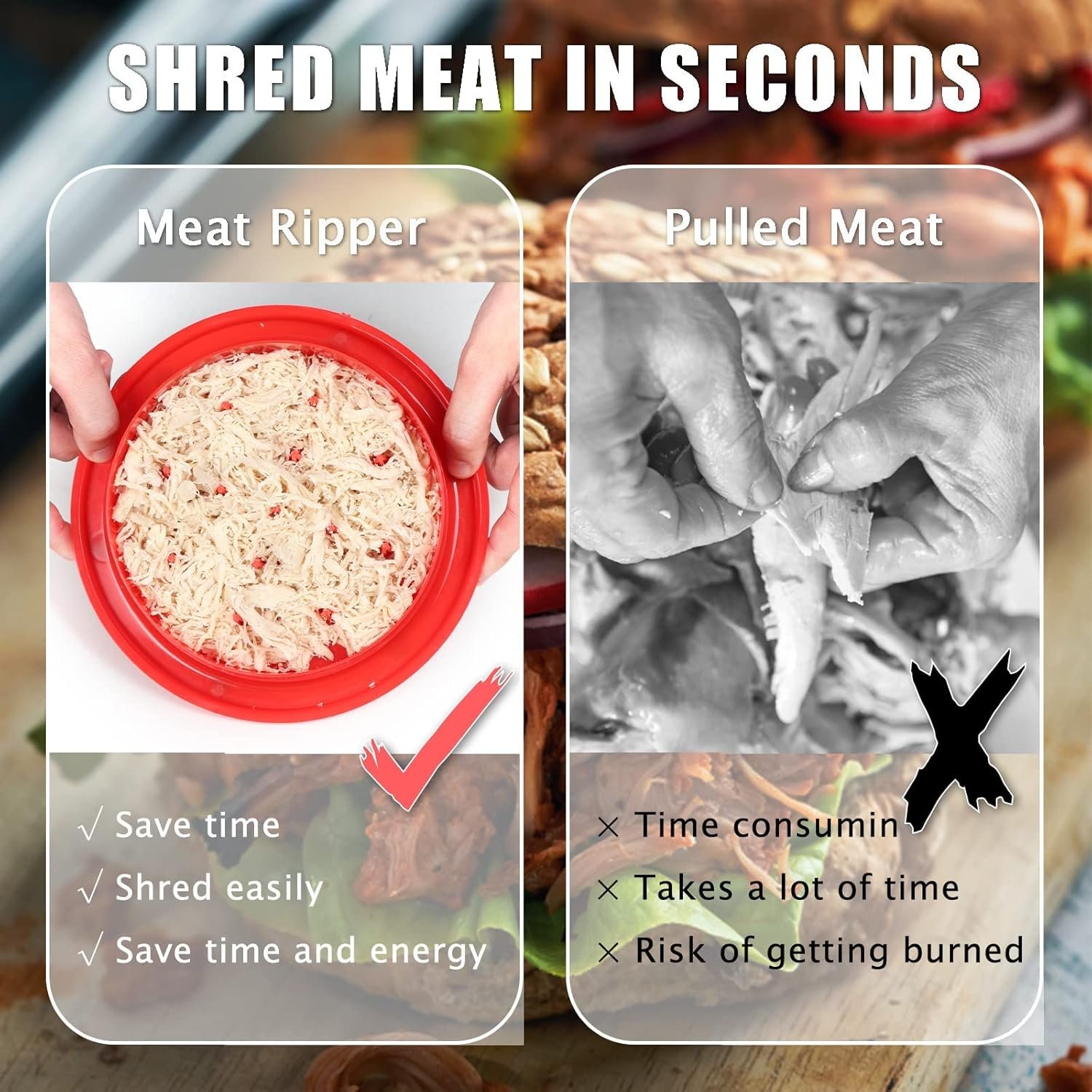 A great addition to any kitchen, this meat shredder tool has a non-skid base that adds extra stability and keeps the ShredMachine where it belongs during use. The easy-grip handles offer added leverage for quick and easy operation.