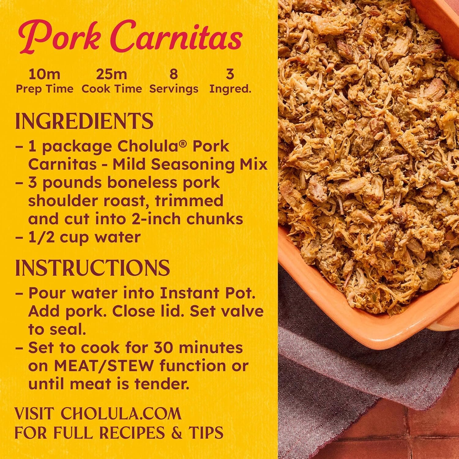 FOR ALL OCCASIONS: Every occasion is made more delicious with Cholula Pork Carnitas Mild Seasoning Mix.