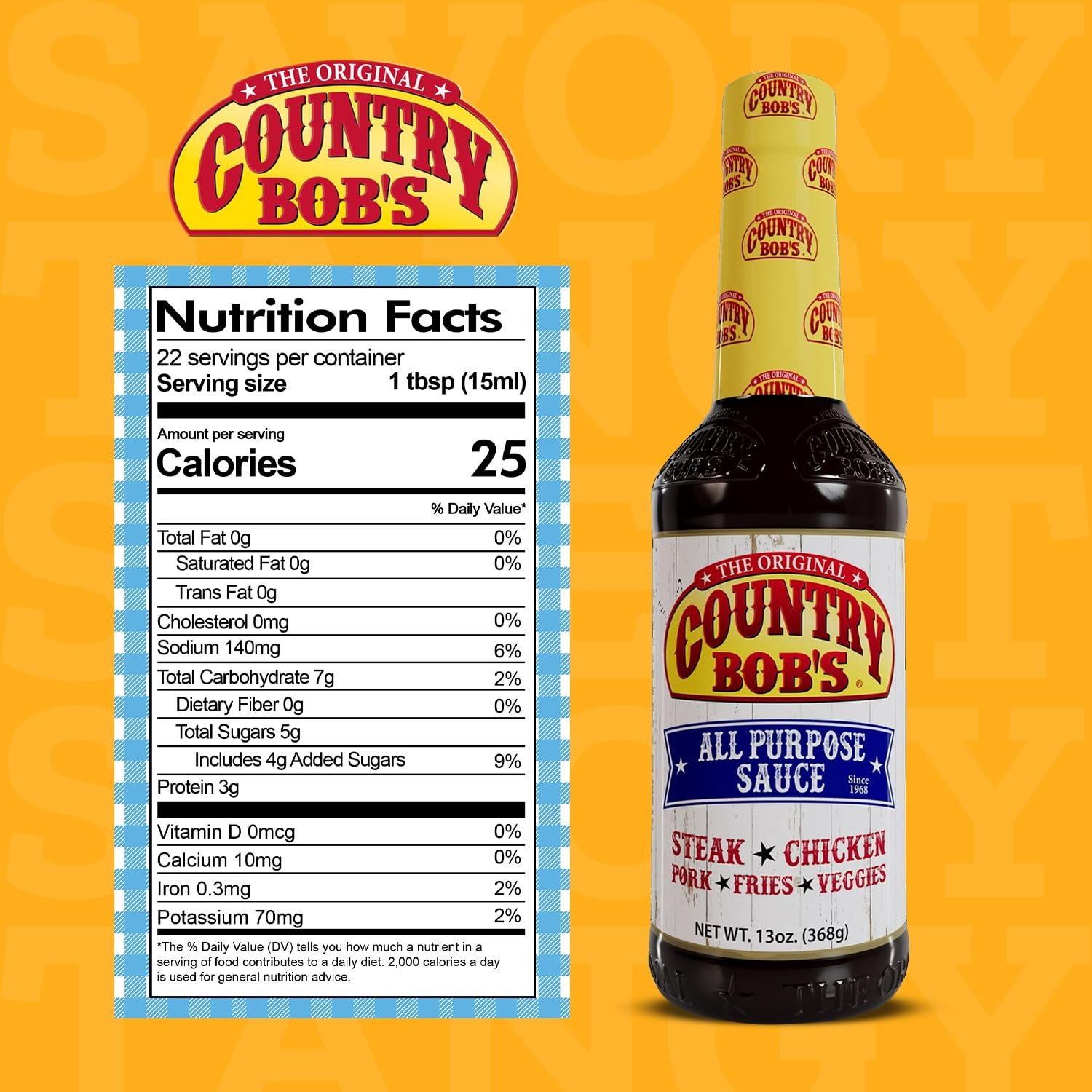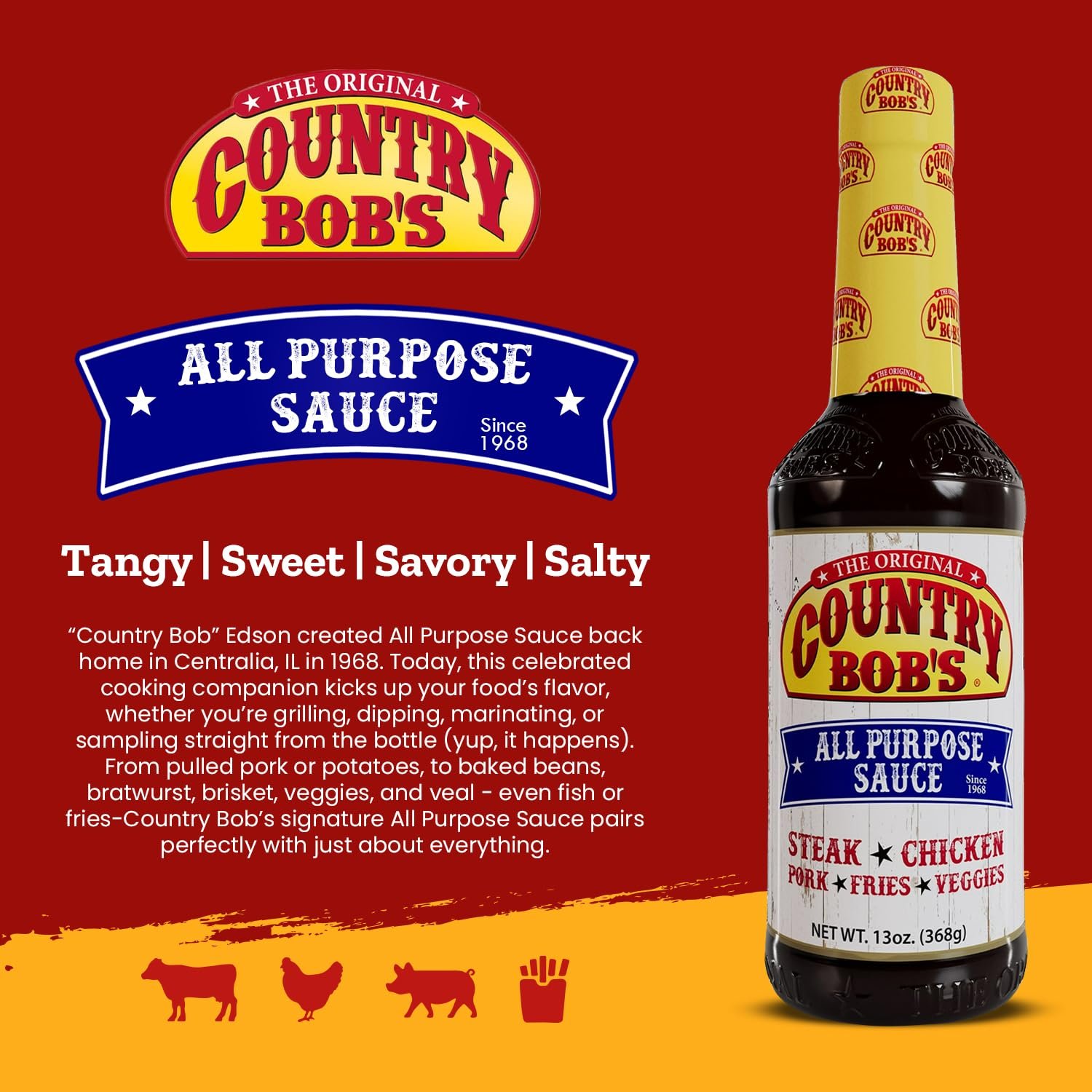 Country Bob’s The Original All Purpose Sauce – Tangy Sweet Savory Flavor, Grilling, Marinating, Enhances Meat, Veggies, Fish, 13oz (Pack of 1)