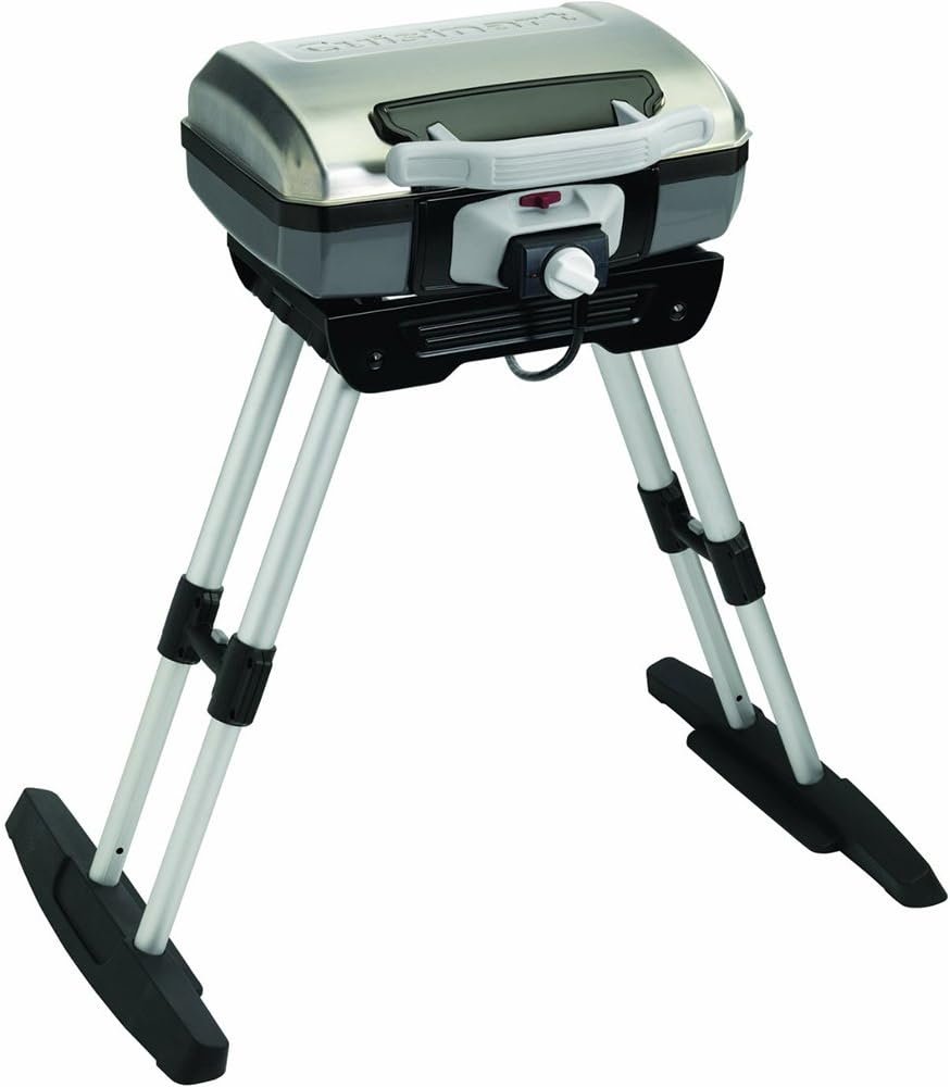 Cuisinart’s Outdoor Electric Grill with VersaStand integrated adjustable telescoping base provides authentic grilling performance and flavor. Its small format fits easily on balconies and small patios – great for places that propane or charcoal grills aren’t allowed. And although the grill is compact, its ample cooking grate is large enough to cook most family meals – 8 steaks, 8 hamburgers, 6 – 10 chicken breasts, or over 4 lbs. of fish! The grill heats up very quickly, and reaches temperatures high enough to sear a steak to perfection. The novel VersaStand telescoping base quickly transforms the grill from storage to tabletop to floor standing use, allowing the chef to enjoy grilling at a comfortable height. The stand is integrated into the grill for added convenience – making easy to store when finished. The grill plugs into a standard household electrical receptacle.