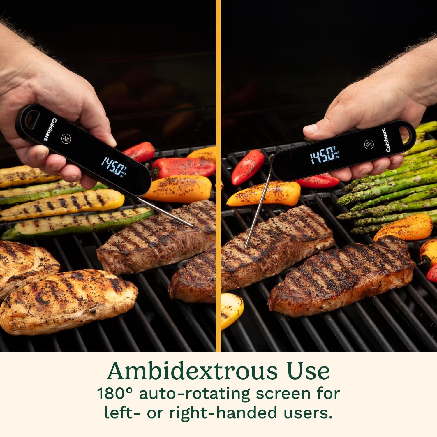 Cuisinart LED Digital Pro Instant Read Thermometer, Calibrated Ambidextrous Waterproof Meat Thermometer for Home & Grill, Lift to Wake Ultra Fast 0.6s Read Time, Home Gadget, BBQ, Smoker, Oil Fry
