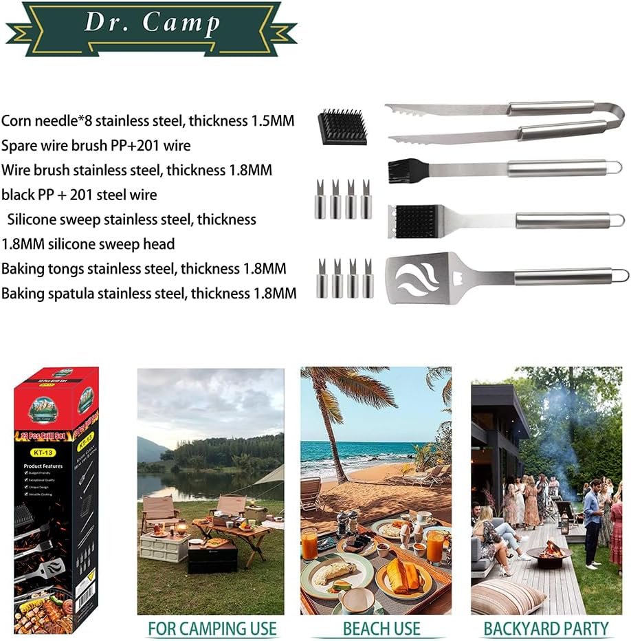 Dr. Camp 13 PCS Grilling Accessories, Grill Set, Grilling Set, Barbecure Utensils, Stainless Steel