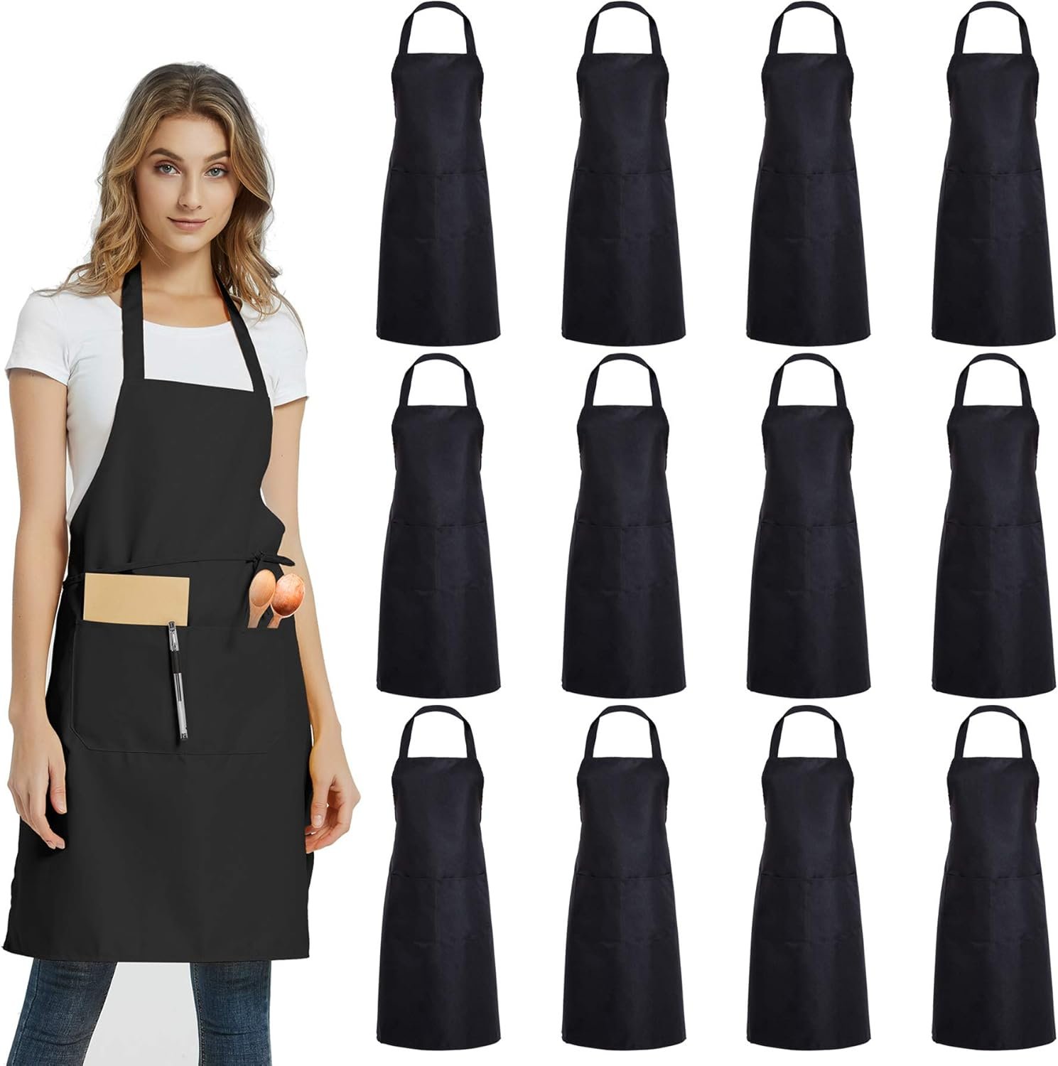 SUITABLE FOR MOST PEOPLE: Set includes 12 kitchen aprons of 30″ x 25″ with 24″ ties, suitable for different body shapes, whether a man or a woman, child or adult.