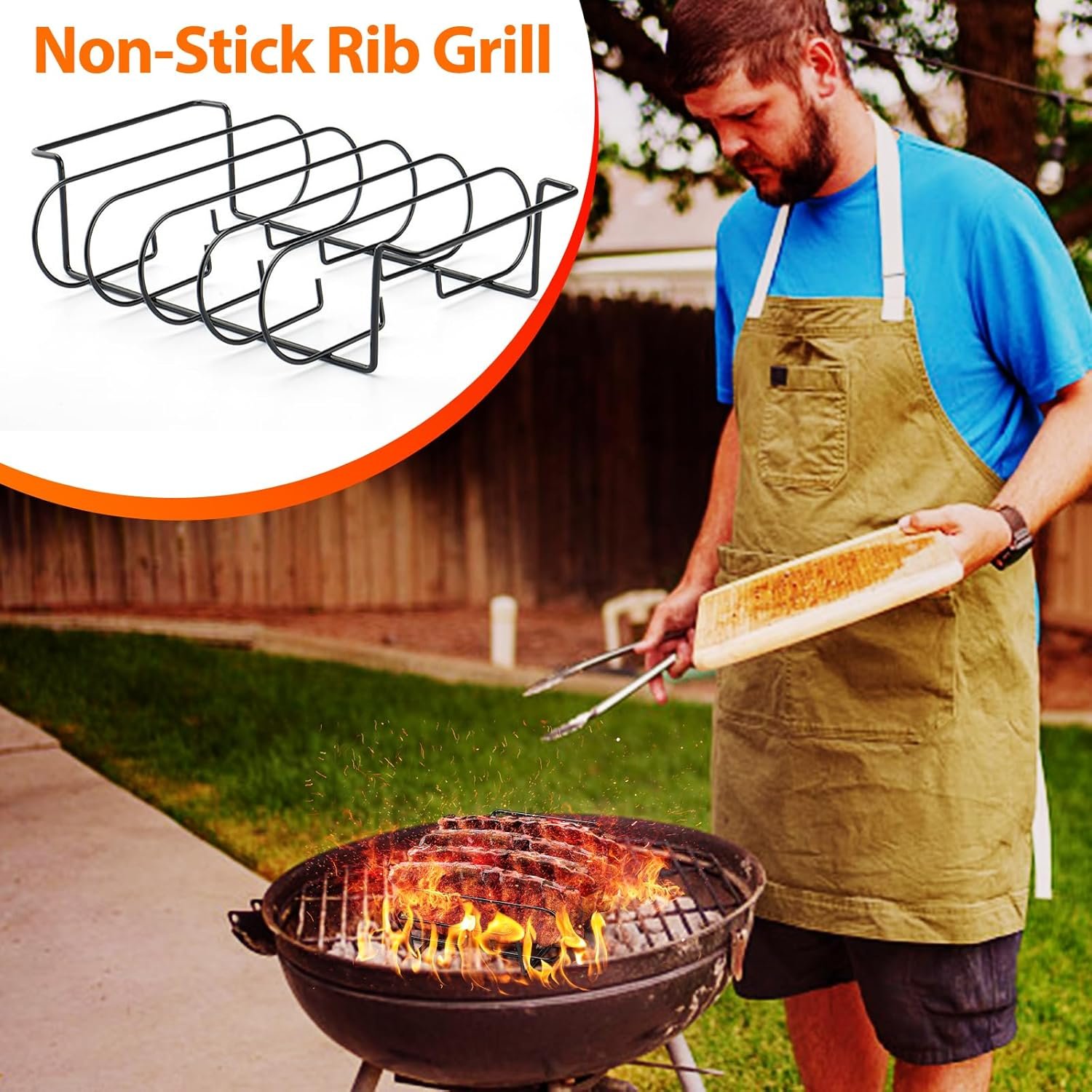 【𝗦𝘁𝗮𝗶𝗻𝗹𝗲𝘀𝘀 𝘀𝘁𝗲𝗲𝗹 𝗻𝗼𝗻-𝘀𝘁𝗶𝗰𝗸 𝗽𝗿𝗼𝗽𝗲𝗿𝘁𝗶𝗲𝘀】Using an ultra-durable rib rack made of stainless steel, you can cook or grill for years and never have to worry about rust or corrosion. Preferred hard material, non-slip workmanship, practical hook design, can be hung in the corner or on the wall.