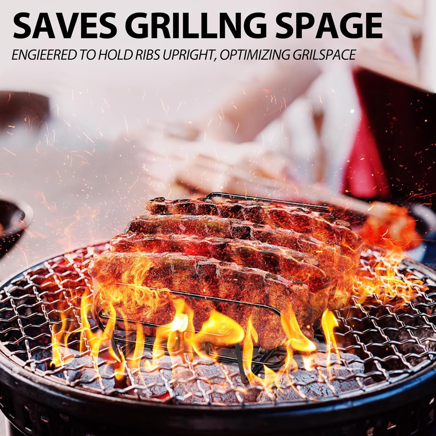 【𝗘𝘅𝘁𝗿𝗮 𝗹𝗮𝗿𝗴𝗲 𝘀𝗽𝗮𝗰𝗲 𝗱𝗲𝘀𝗶𝗴𝗻】Our smoked and barbecued rib racks are extra long and the right width to hold up to 4 full ribs, chops or other ribs! Measures approximately 12” L x 9.96” W x 2.87” H