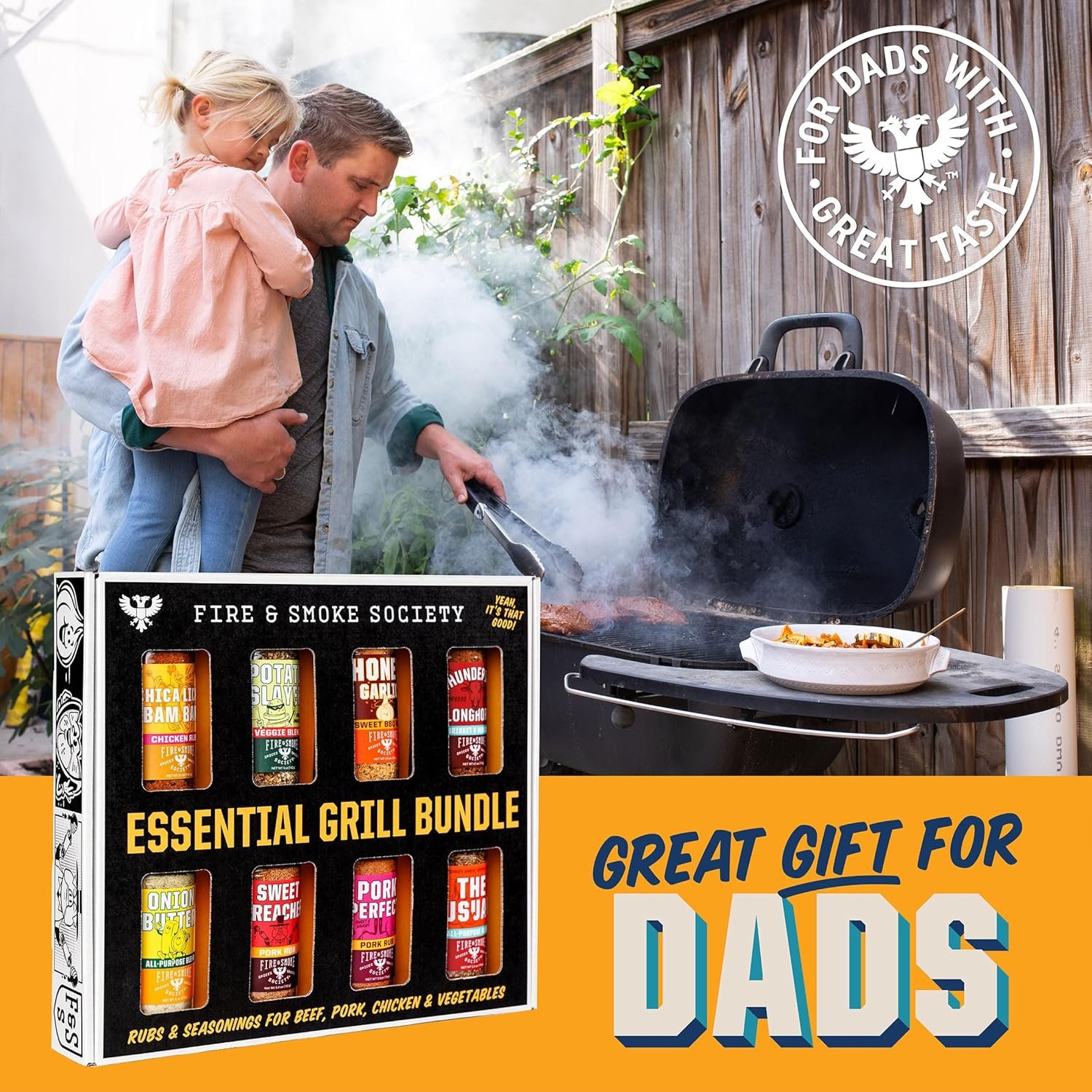 Value bundle variety pack: Queue up the Dad jokes. The Fire & Smoke Society Ultimate BBQ Variety Pack grill seasoning set is your one stop gift solution, for the grill maestro in your family be that (Dad or Mom). These bbq seasonings and rubs are all you need for smoking and grilling pork, chicken, beef, fish, steak, and veggies. This premium meat seasoning kit has every grill seasoning your Dad, Grandad, Step-Dad, Crawdad or Doodad could ever need. The perfect bbq accessories, fathers day, birthday gifts for men, Christmas gifts for men, anniversary gifts for men, and dad gifts.