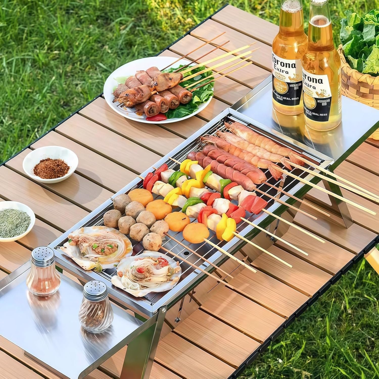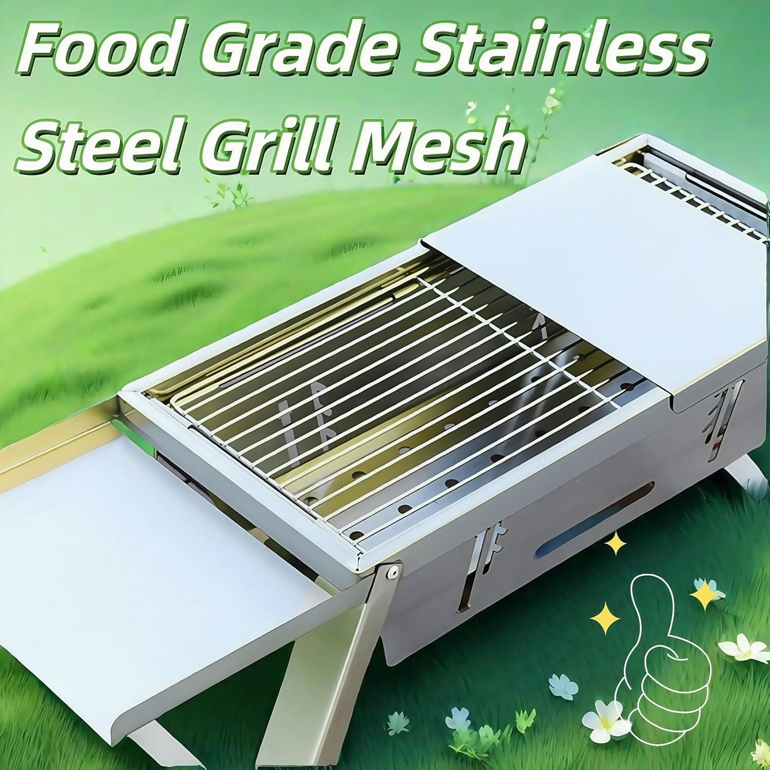 【Durable Stainless Steel Construction】: Crafted from high-quality stainless steel, this grill is not only built to last but also ensures even heat distribution for perfectly cooked food. Plus, it’s rust-resistant and easy to clean after use