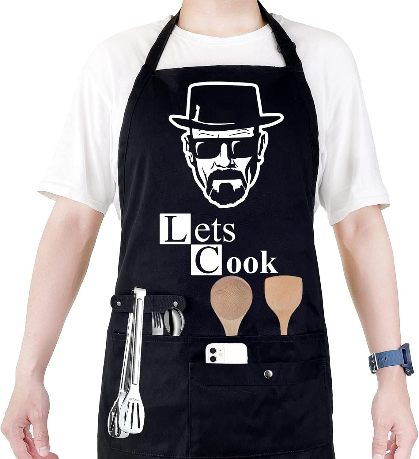 Funny Cooking Chef Apron with Pockets BBQ Kitchen Work Aprons Birthday Dad Creative Gifts