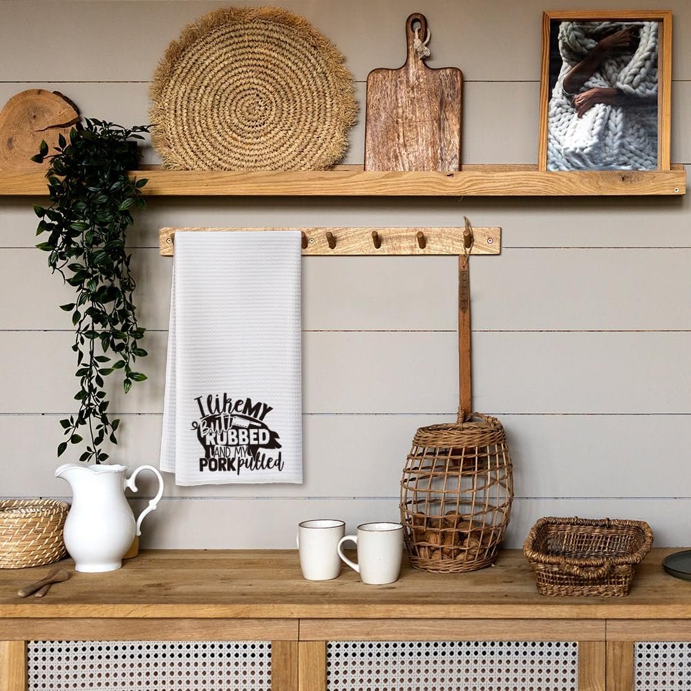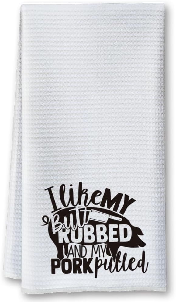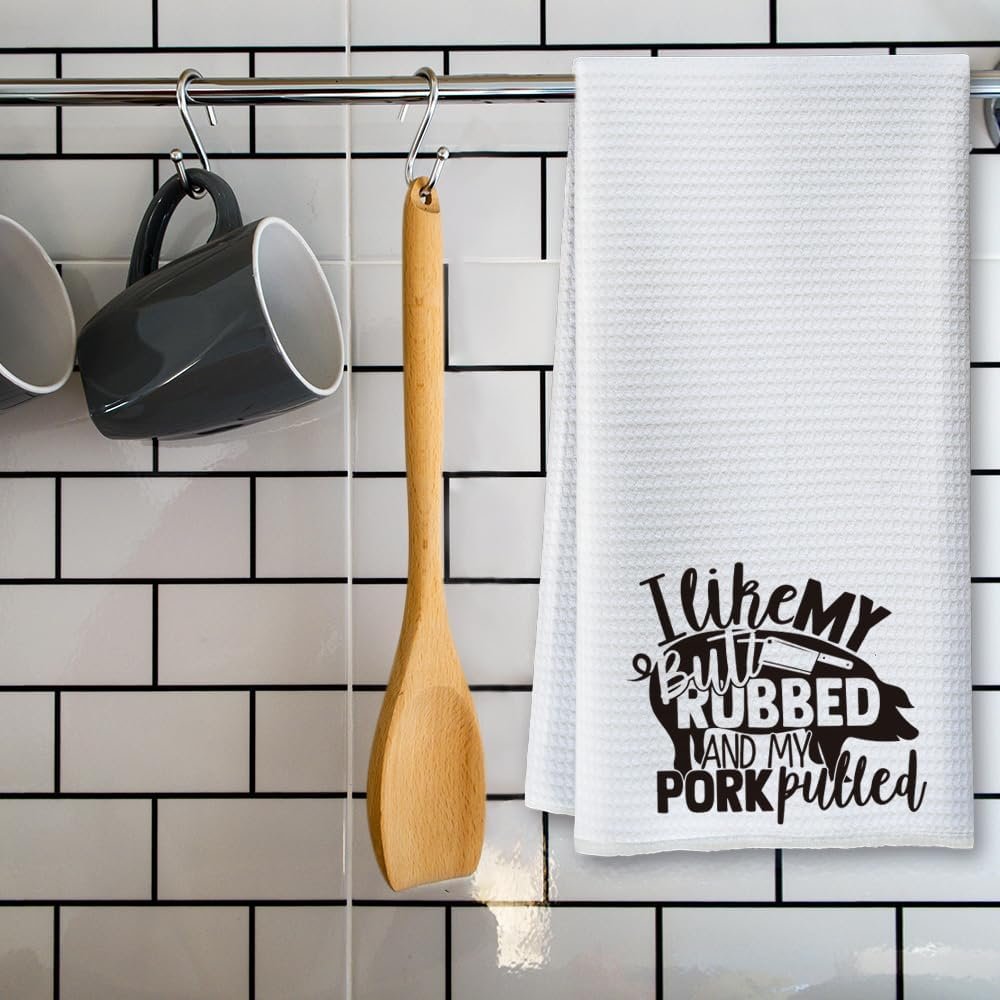 Funny Kitchen Towels for Men, Women, BBQ Grilling Cooking Dish Towels – I Like My Butt Rubbed And My Pork Pulled – Funny Birthday Gifts for Husband, Dad, Friend – Gag Gift for Chefs 16 x 24 Inch