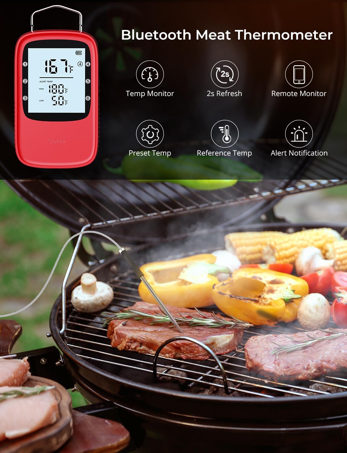 Bluetooth Monitor Remotely: Govee bluetooth meat thermometer can tranfer temperature data to your phone, you can check the meat temperatures of your grill, smoker or oven at any time. With this smart BBQ thermometer, you can get other tasks done while grilling.