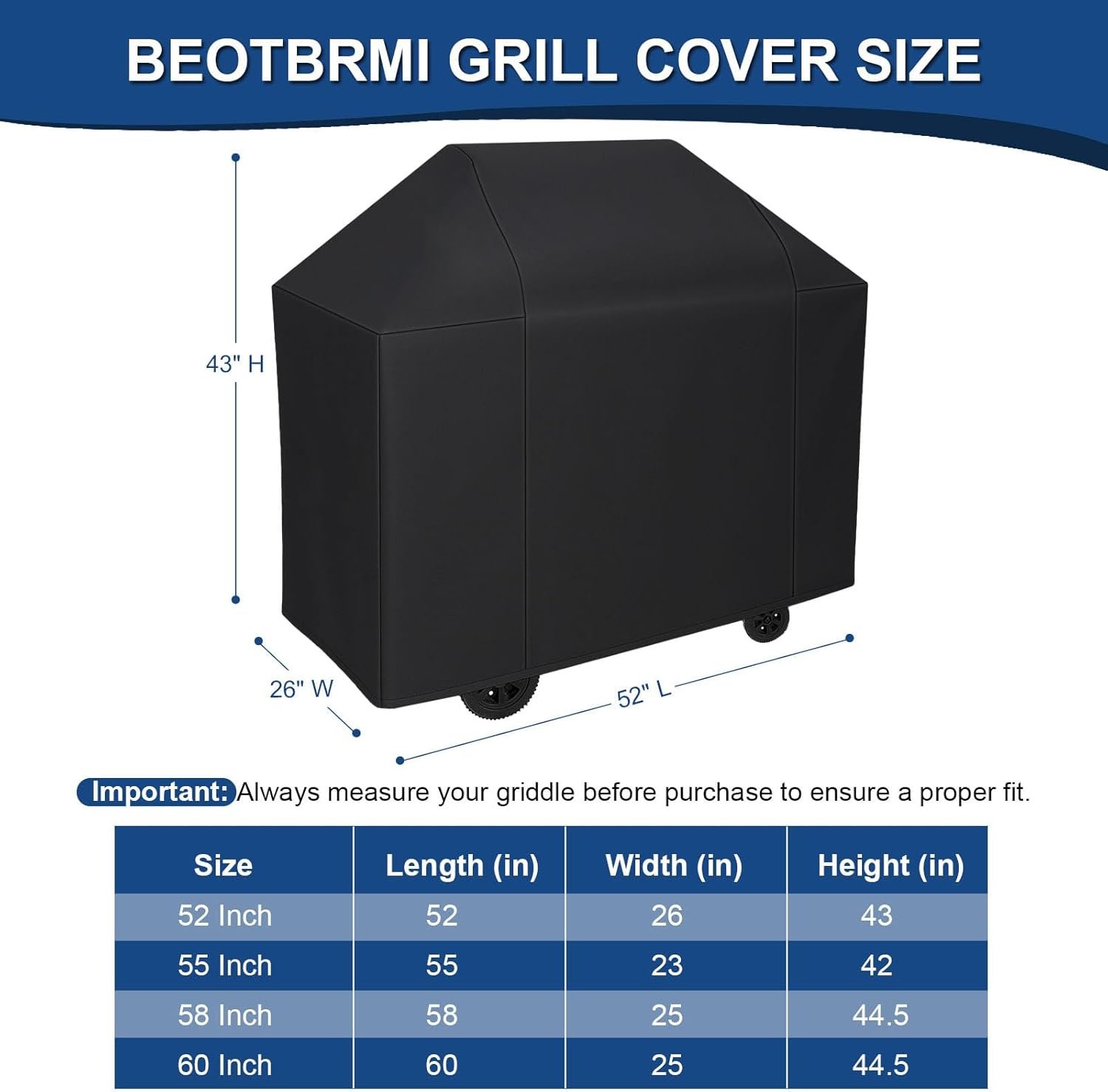 Perfect Fit for Most Grills – 52″W x 26″D x 43″H. Compatible with Weber Spirit 200/300 series, Spirit 210 (with tables up), and other 2-3 burner grills up to 50″ wide, including brands like Charbroil, Nexgrill, Napoleon, and more. Not compatible with Spirit II 300 models or older Spirit E 310 models with the gas valve on the right side. Be sure to measure your grill before purchasing for the best fit.