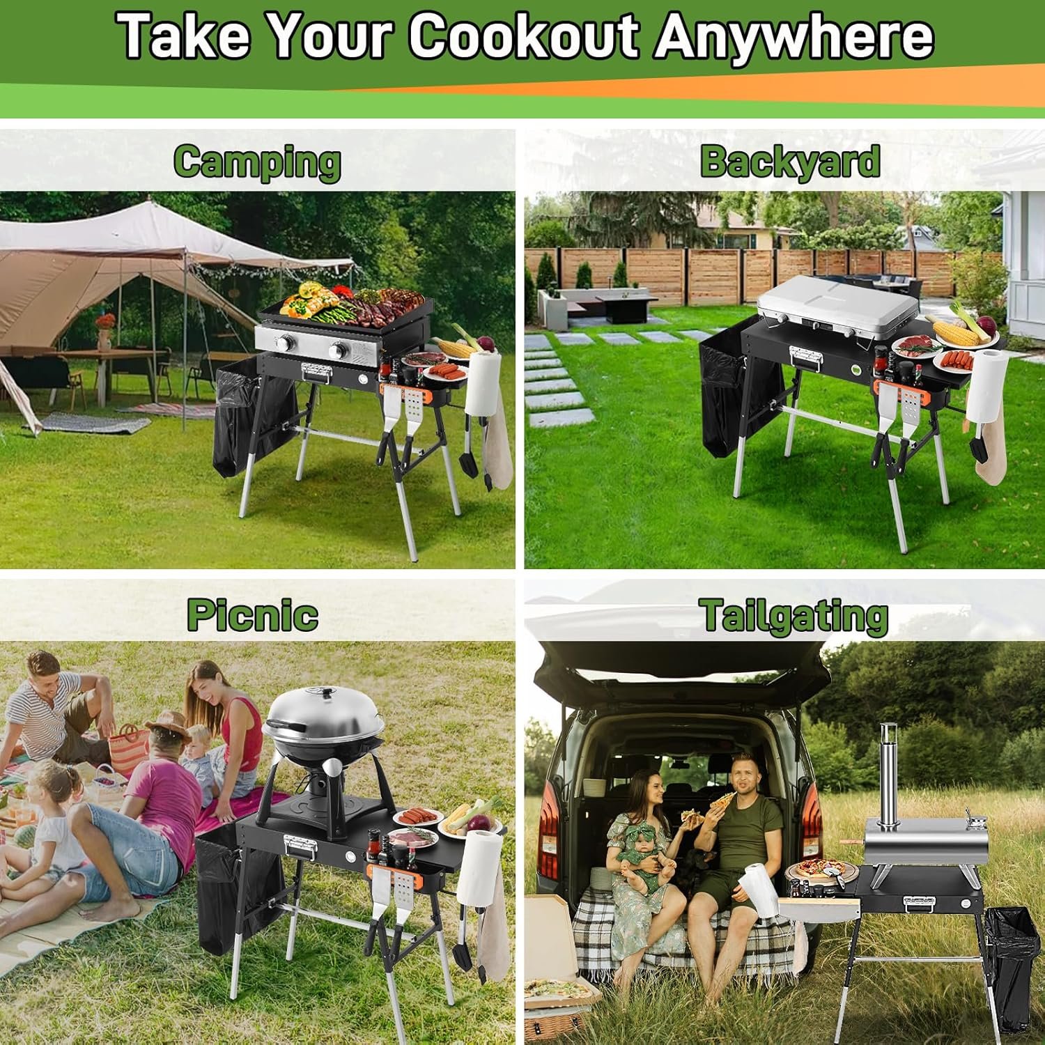 Ultra Wide Adaptability: This portable grill table can be used as a Blackstone grill stand, it is an excellent owner of blackstone 22 inch griddles and blackstone 17 inch griddles, it is also equally suitable for Ninja grills, ninja air fryer grills, pizza ovens, Weber tabletop grill, electric grill, woodfire grill, and other tabletop grills.