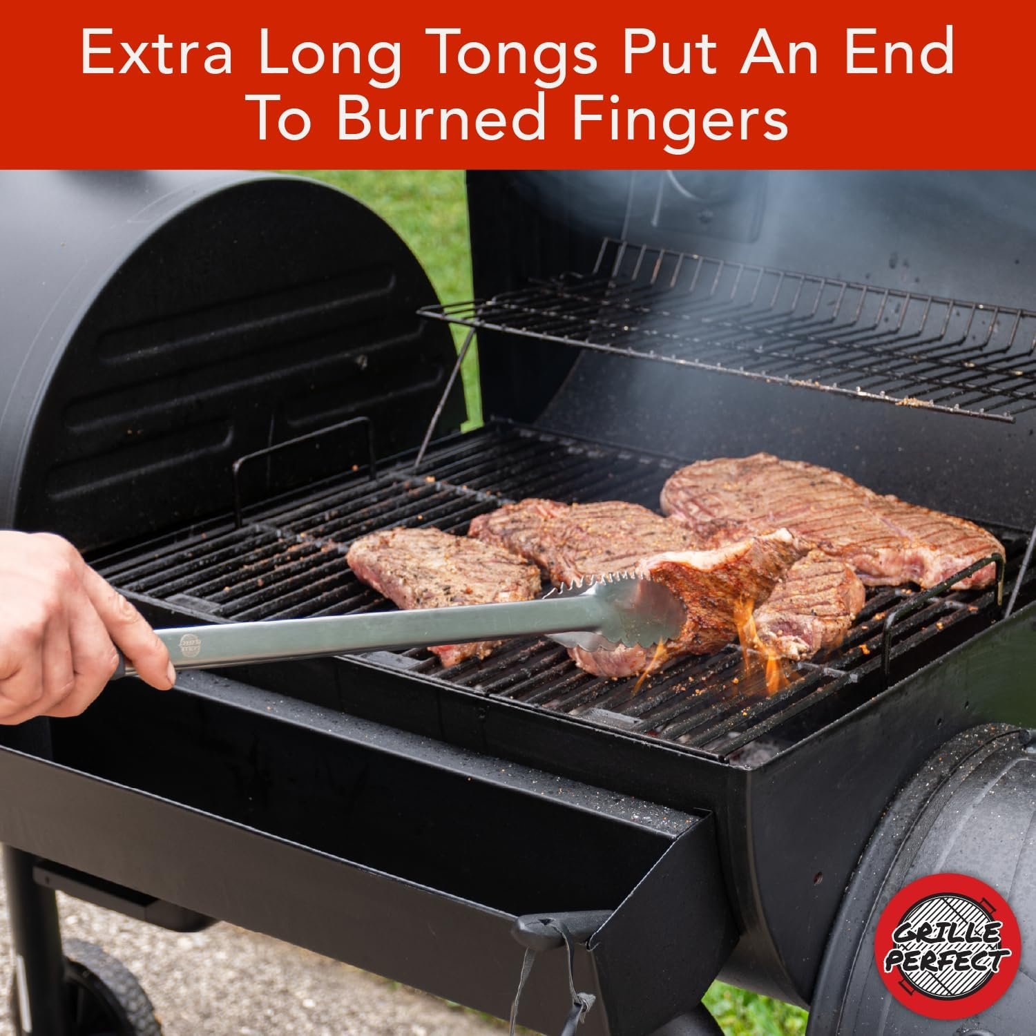 Hanging and Locking Ring For Easy Storage: Our extra long tongs for grilling are designed with a push-pull locking ring to hold them closed for easy storage with your other grill tools. Try these long handle tongs at your next cookout see why the Grille Perfect family of satisfied customers is always growing!