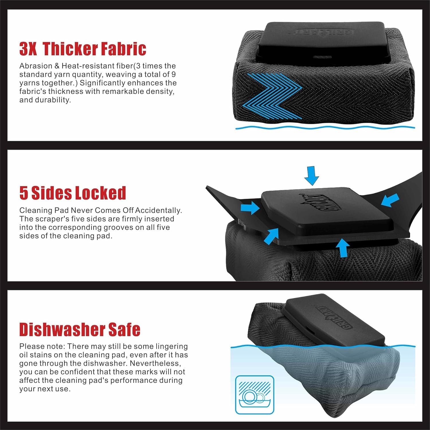 Sturdy – Strong and flexible stainless steel handle never bends or break, keeping you away from heat sources. Built-in scraper to remove cold buildup. Brush cleaning head is made of heat-resistant StelFyber and is reusable for safe use on hot grills (preheat grill to over 400 degrees Fahrenheit and then turn off all burners for your safety.